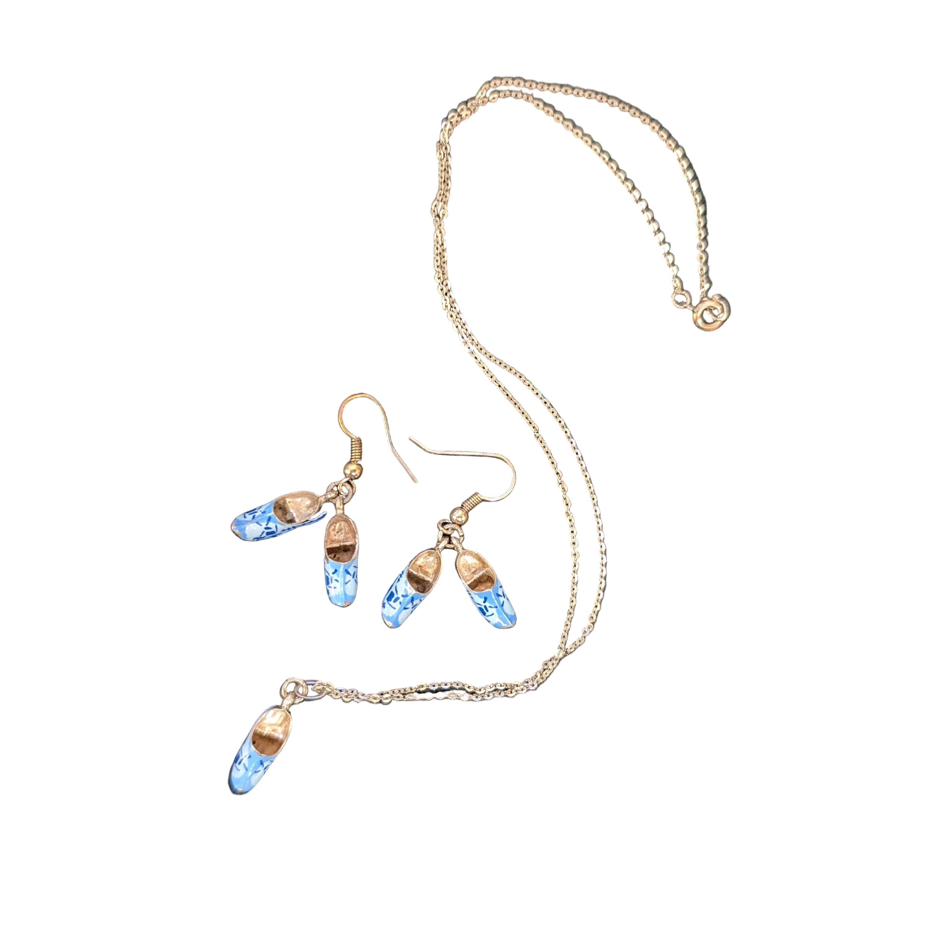 835 Silver Dutch Clogs Earring and Pendant on Chain Set