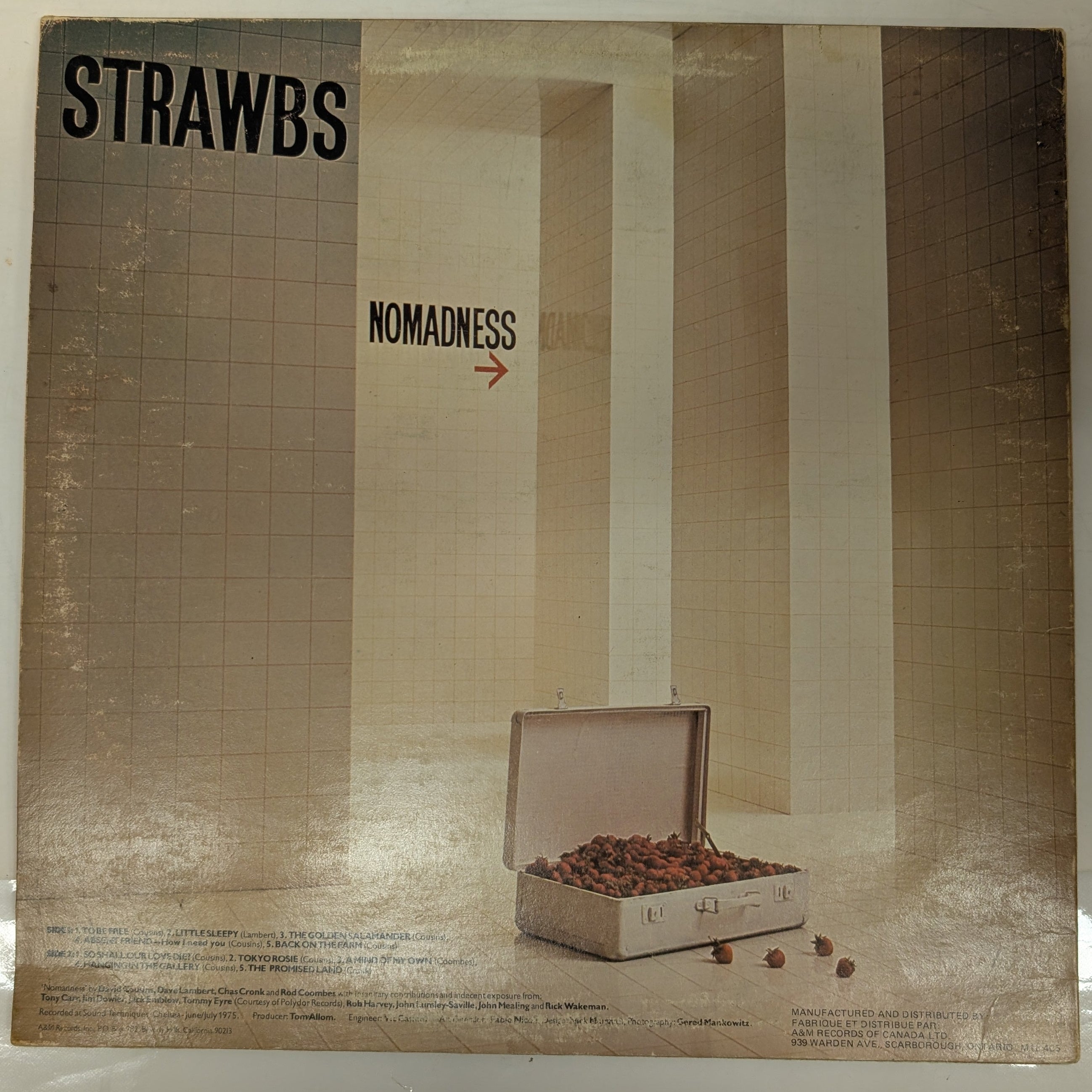 Strawbs "Nomadness" Vinyl, 1975. Cover in good condition, shows signs of wear. Vinyl in good condition, Side 1 has a large scratch.