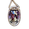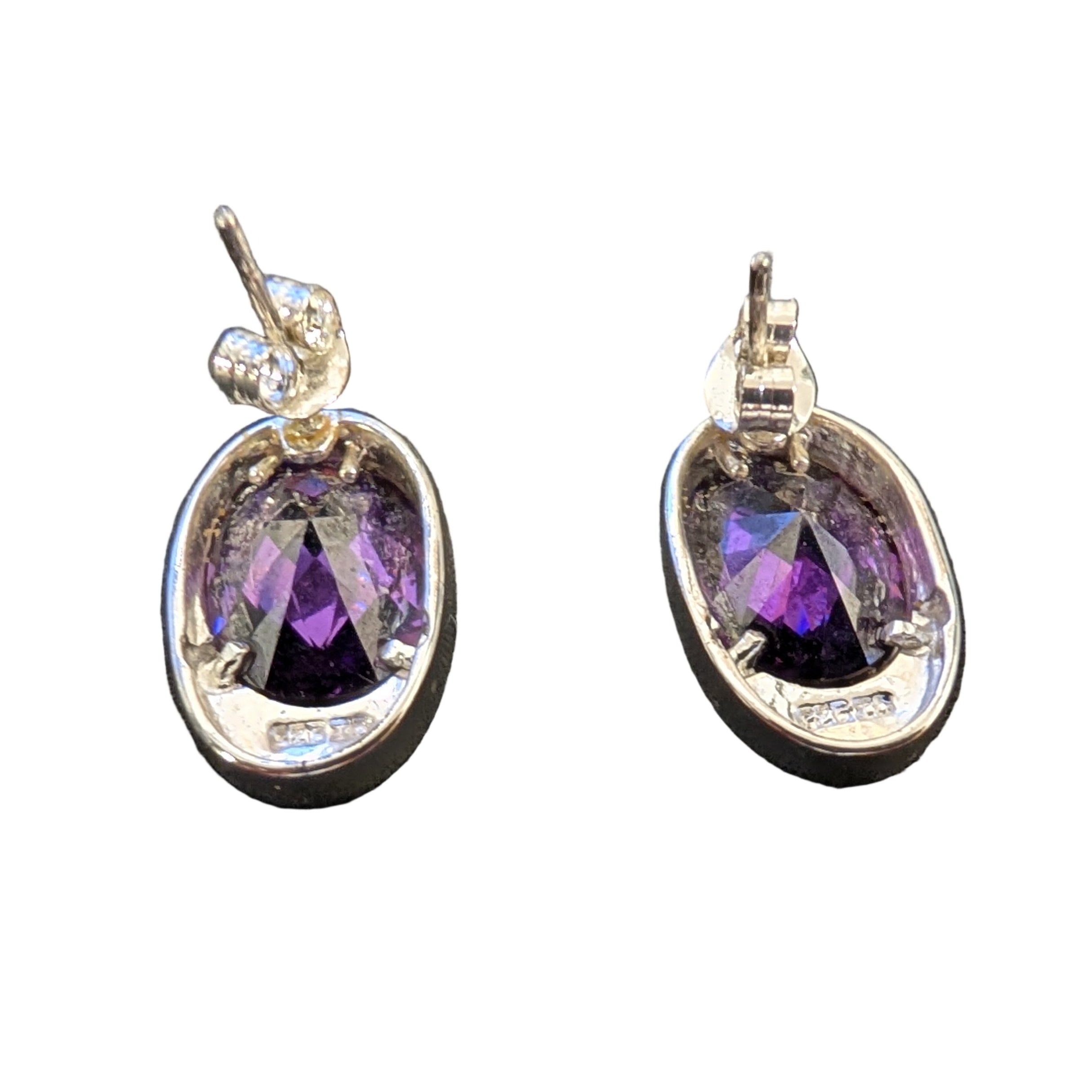 Two-Tone Sterling Silver and Purple Checkerboard Cut Oval Stone Necklace (pendant with a hidden bail on a 17" heavy snake chain) and stud Earring Set. In good condition.