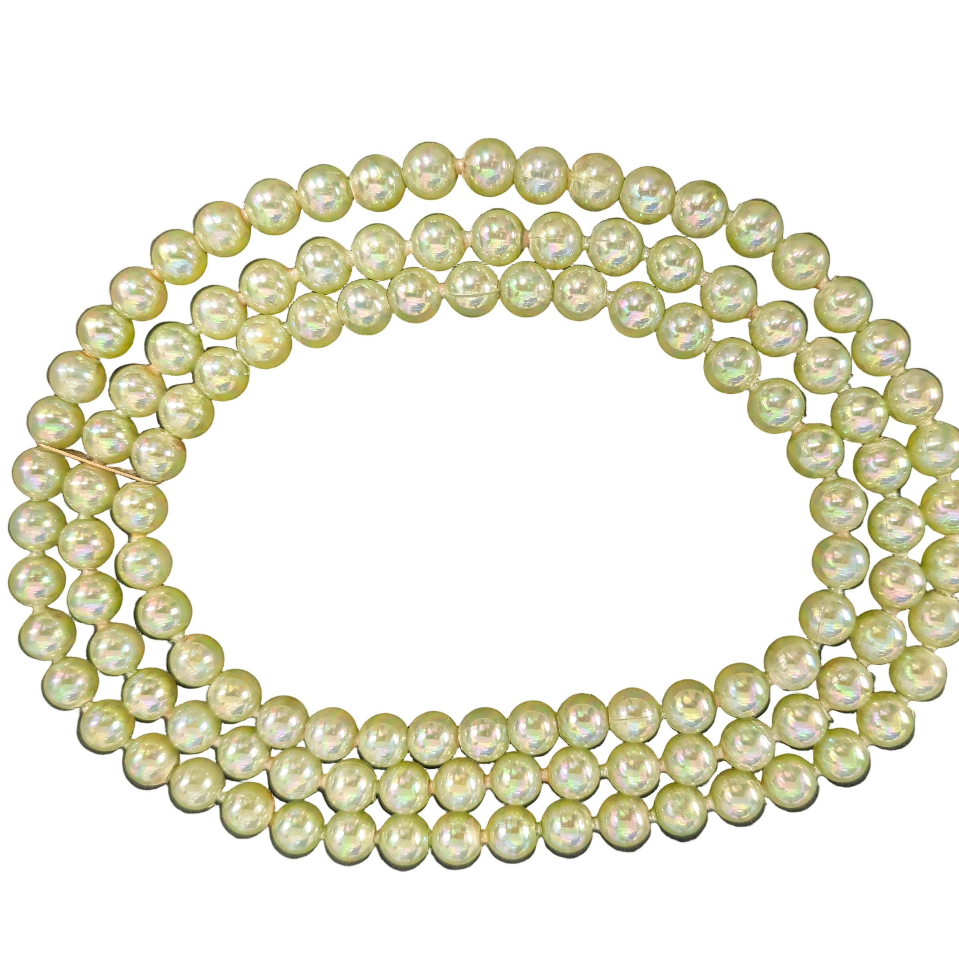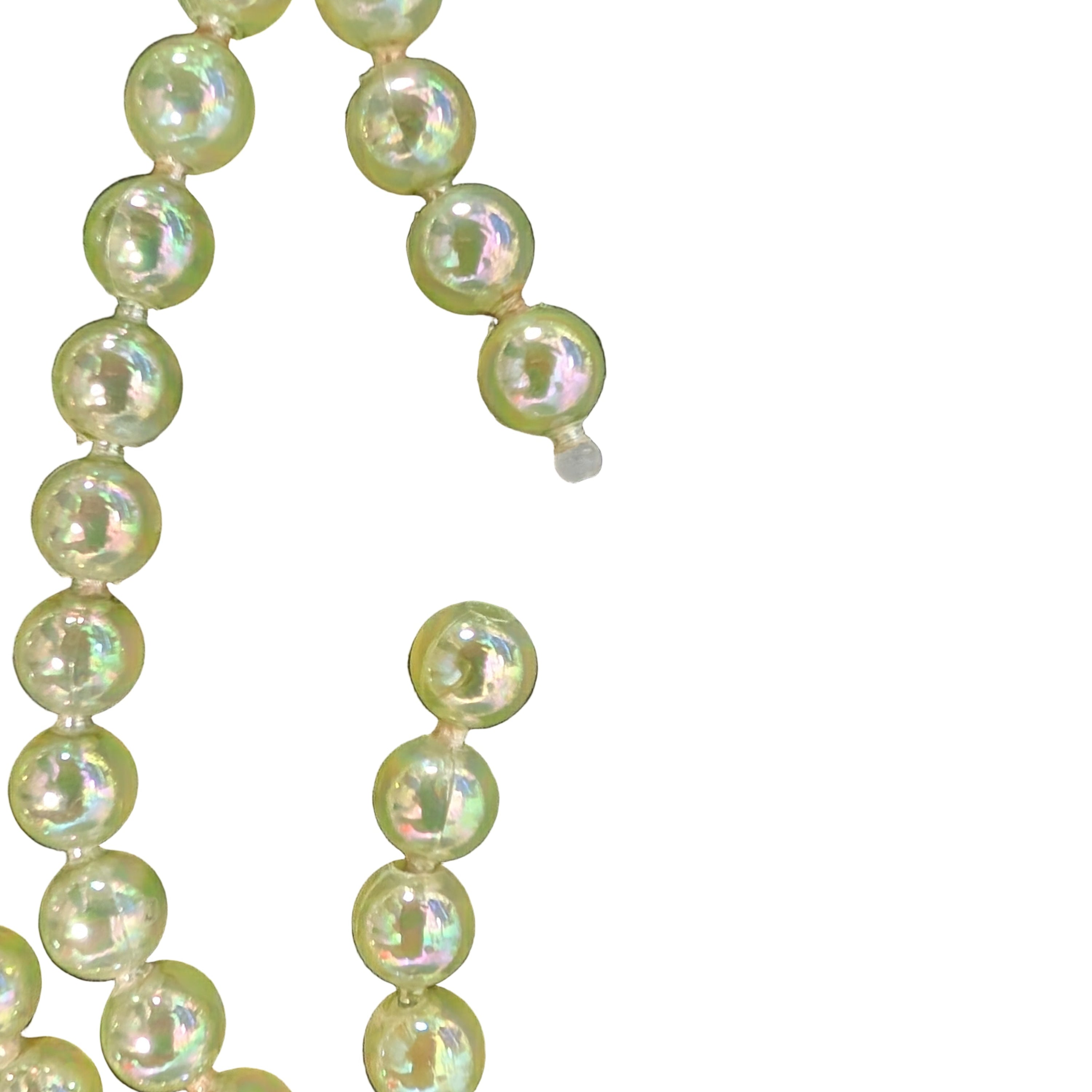 Vintage Iridescent Green Pop Bead Three-Strand Choker Necklace