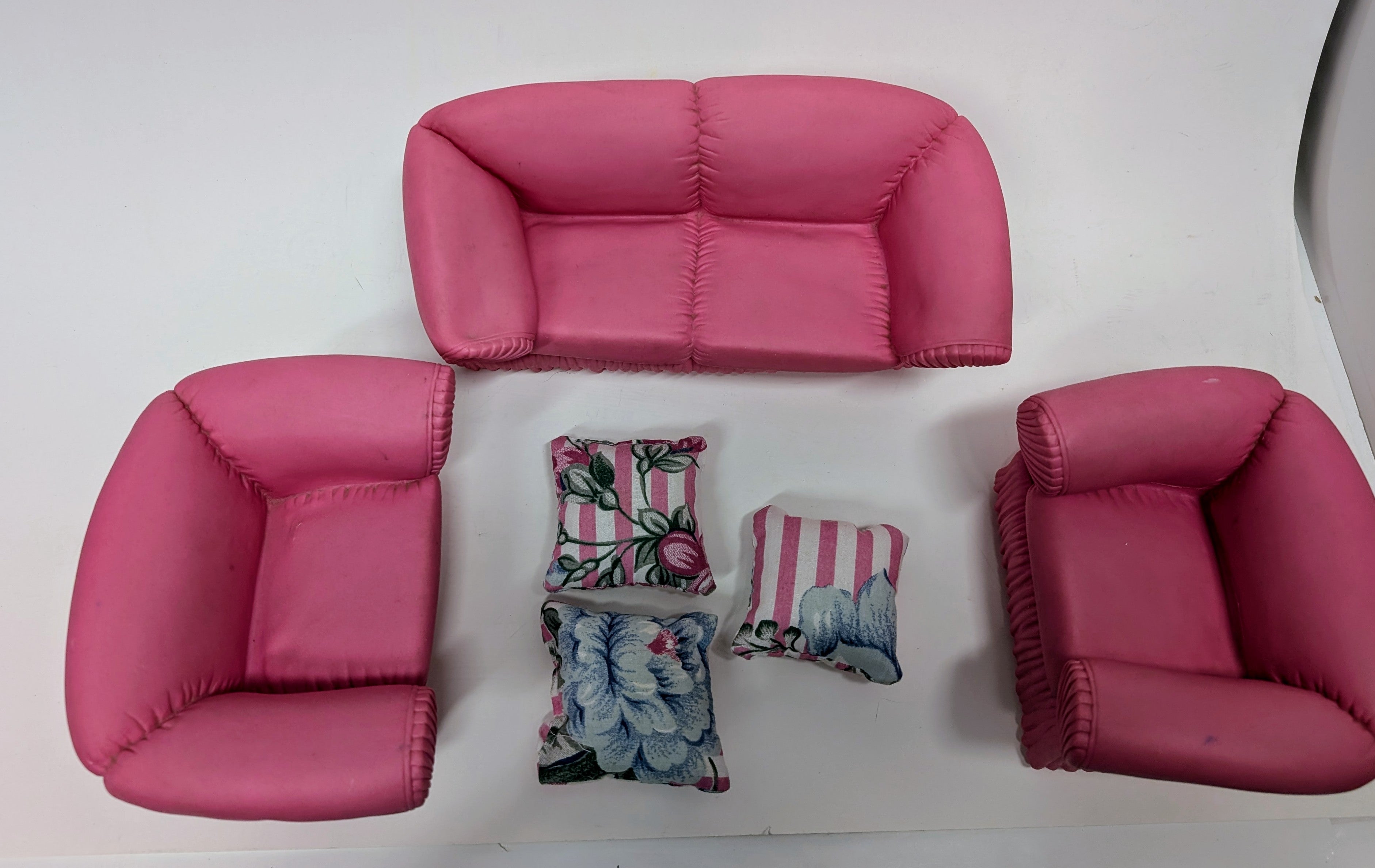 1990 Barbie Beverly Hills Family Room, 2 armchairs, a couch and 3 cushions, with box