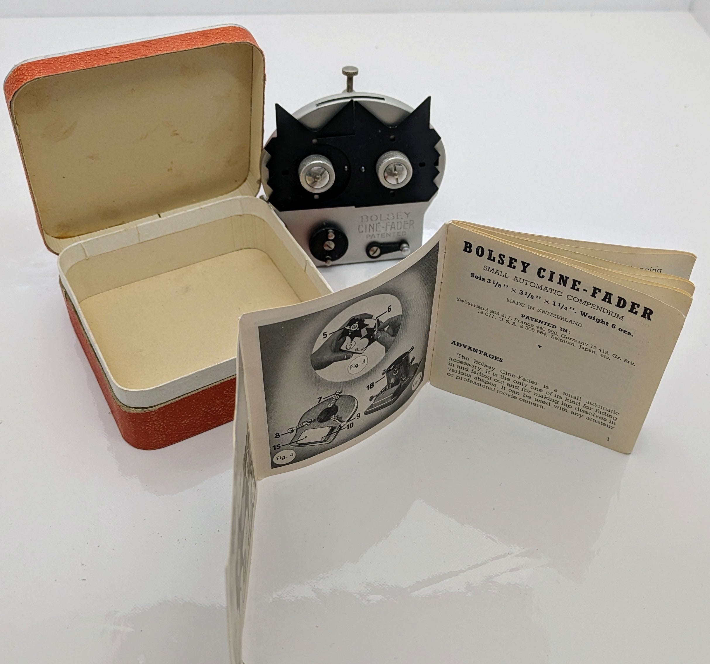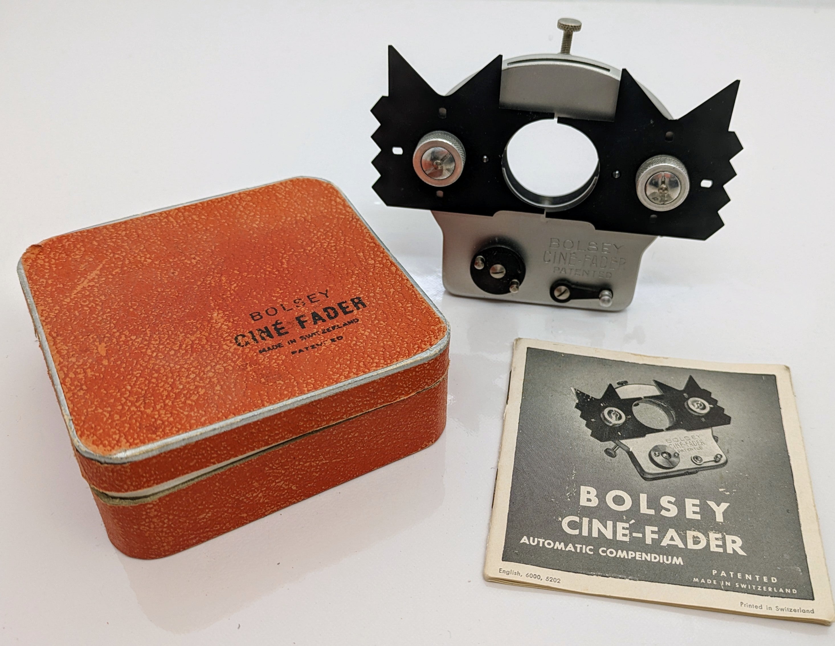 From the description in the manual: "The Bolsey Ciné-Fader is a small automatic accessory. It is the only one of its kind for fading in and feeding out and from making lap dissolves in various shapes. It can be used with any amateur or professional movie camera."