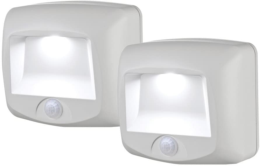Mr. Beams Battery Operated Indoor/Outdoor Motion-Sensing LED Step Light, 2-Pack, White