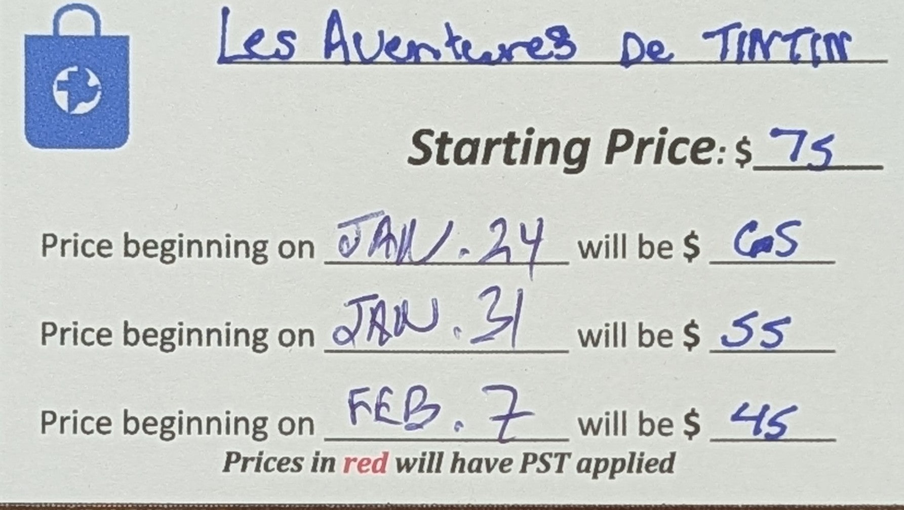 Part of our "Countdown Auction", this item is available for immediate purchase. The price is set to drop every Saturday morning (by 9:30 in store & online); see the picture of the description card for amounts and dates. (Please note, items priced over $100 will have 7% PST applied.)