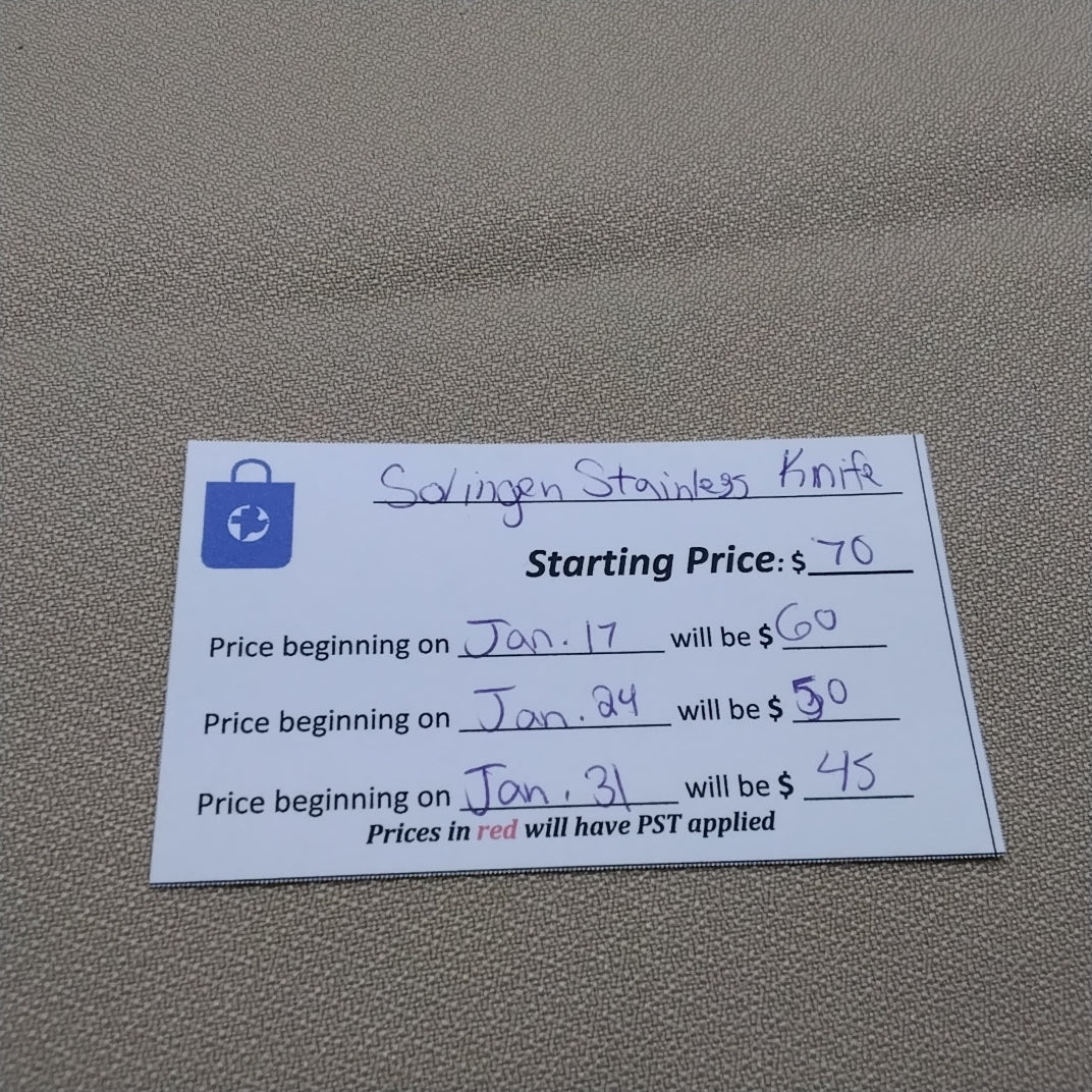 Part of our "Countdown Auction", this item is available for immediate purchase. The price is set to drop every Saturday morning (by 9:30 in store & online); see the picture of the description card for amounts and dates. (Please note, items priced over $100 will have 7% PST applied.)