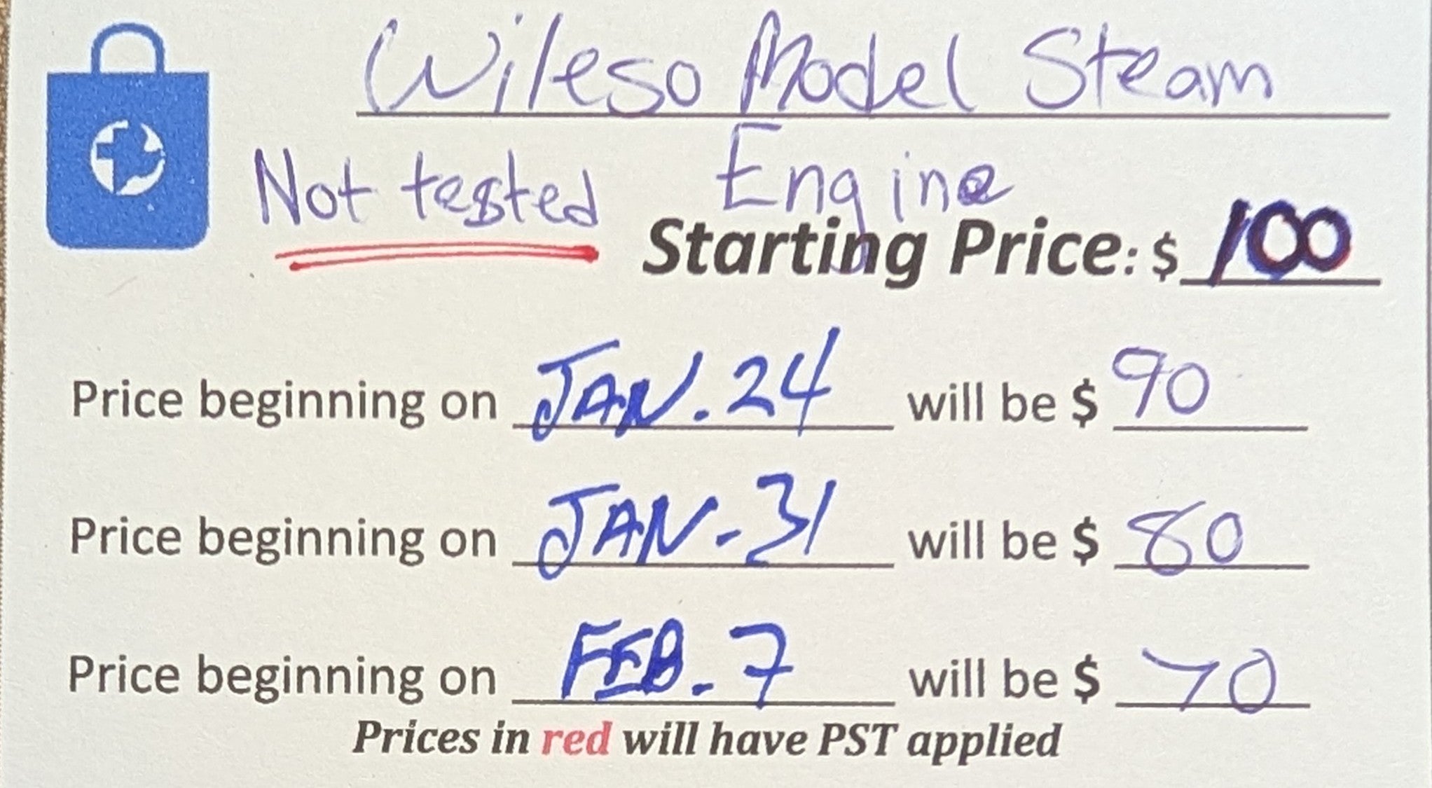 Part of our "Countdown Auction", this item is available for immediate purchase. The price is set to drop every Saturday morning (by 9:30 in store & online); see the picture of the description card for amounts and dates. (Please note, items priced over $100 will have 7% PST applied.)