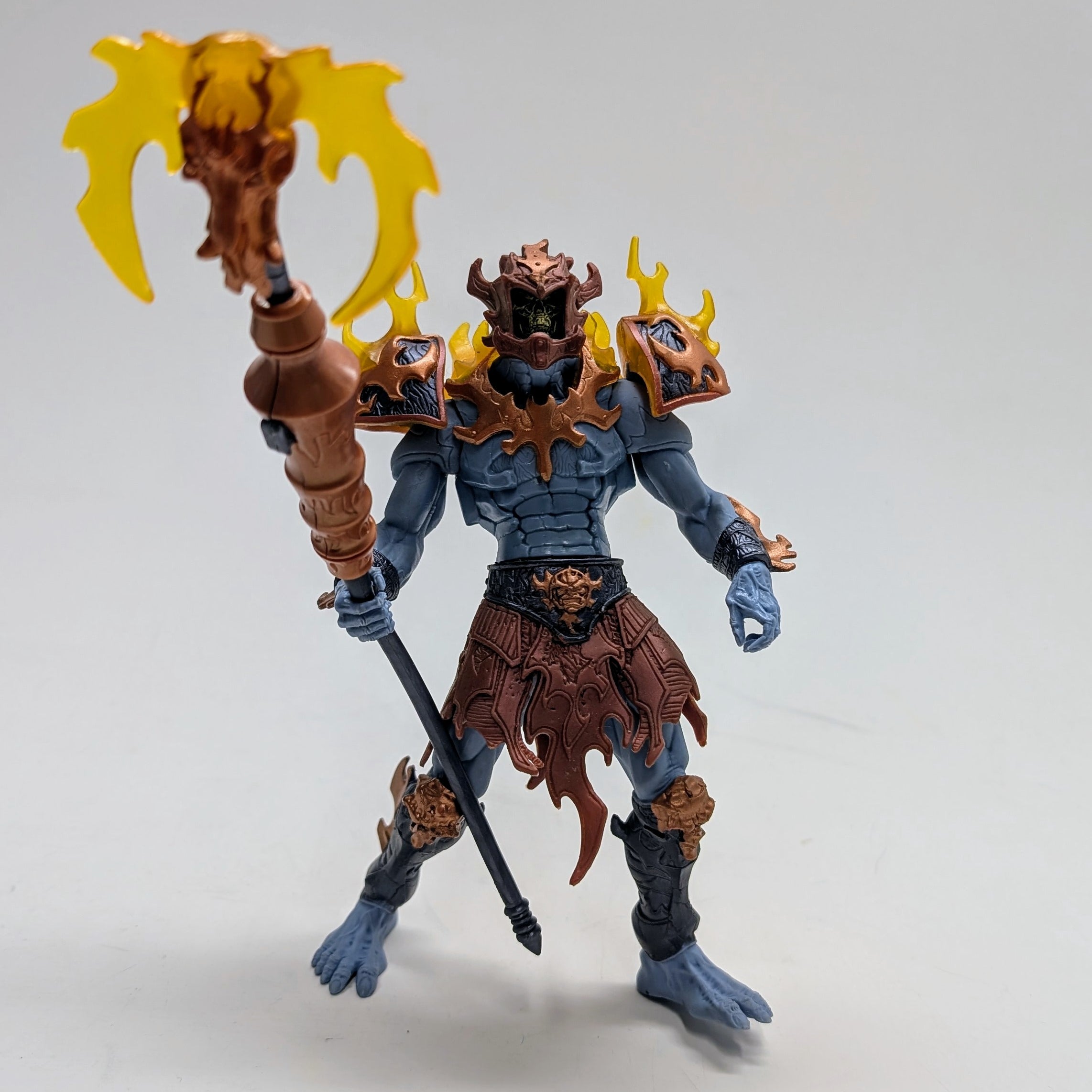 Relive the epic battles of the 200X era with this incredibly detailed figure. This isn't just a toy; it's a piece of MOTU history. The 200X series reimagined the classic He-Man saga for a new generation, and this Fire Armor Skeletor embodies the darker, more intense tone of the show. He comes complete with his iconic Havoc Staff, now crackling with simulated flames, and a removable helmet showcasing his menacing skull visage.