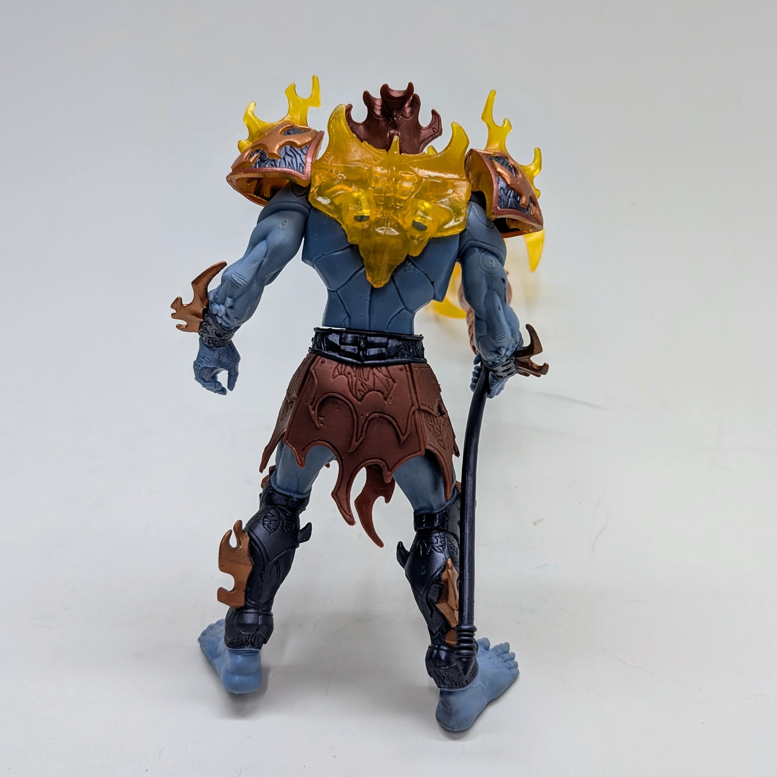 Unleash the inferno with this highly sought-after Fire Armor Skeletor action figure from the 200X Masters of the Universe Classics line! This isn't your father's Skeletor – this version draws inspiration from the explosive 2002 Mike Young Productions animated series, showcasing the sinister warlord clad in fiery red and translucent orange armor, ready to conquer Eternia once and for all.