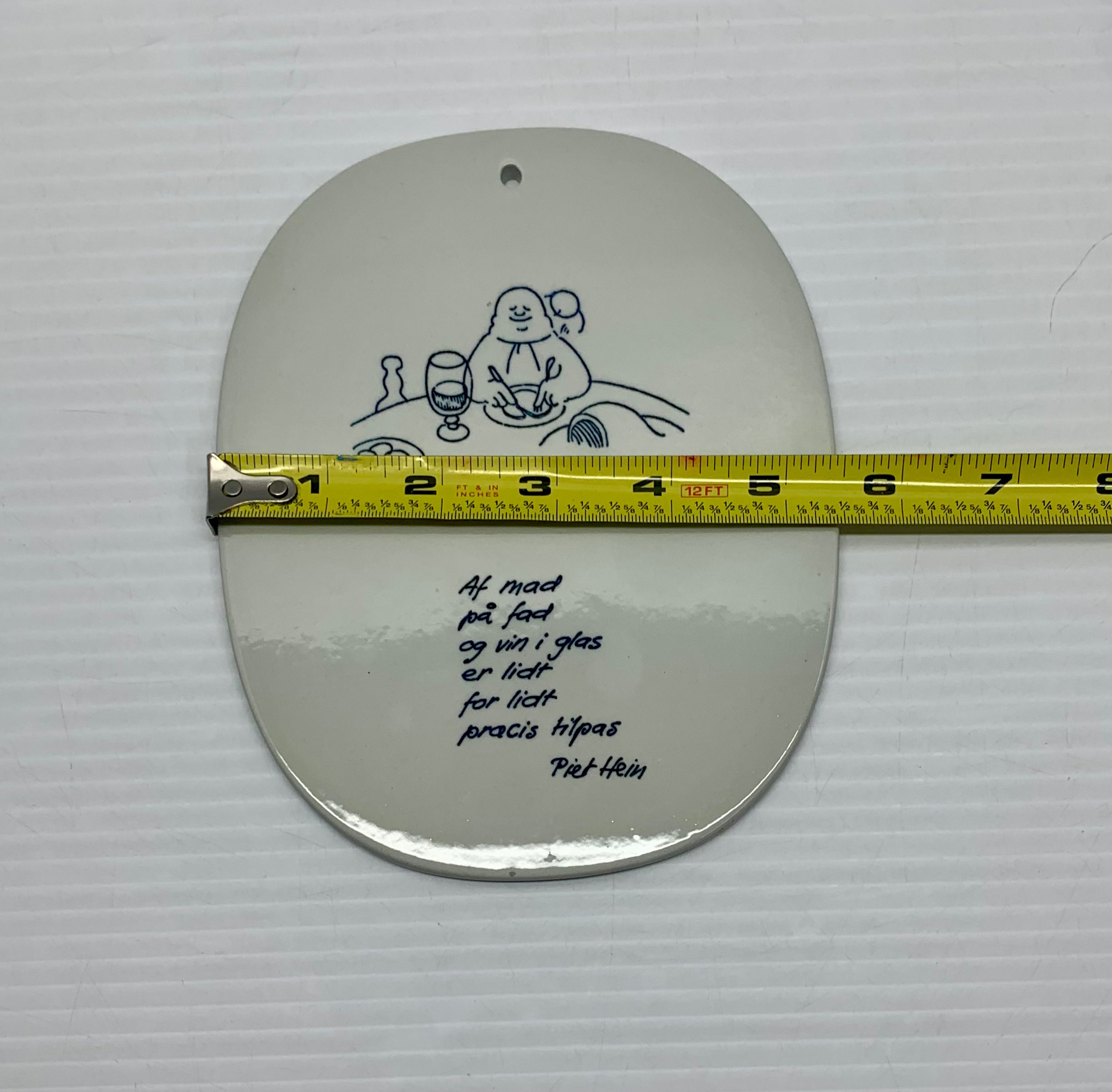 A charming piece of Danish design heritage, this elegant porcelain butter platter doubles as a decorative wall plaque featuring an authentic grook by renowned Danish poet and designer Piet Hein.