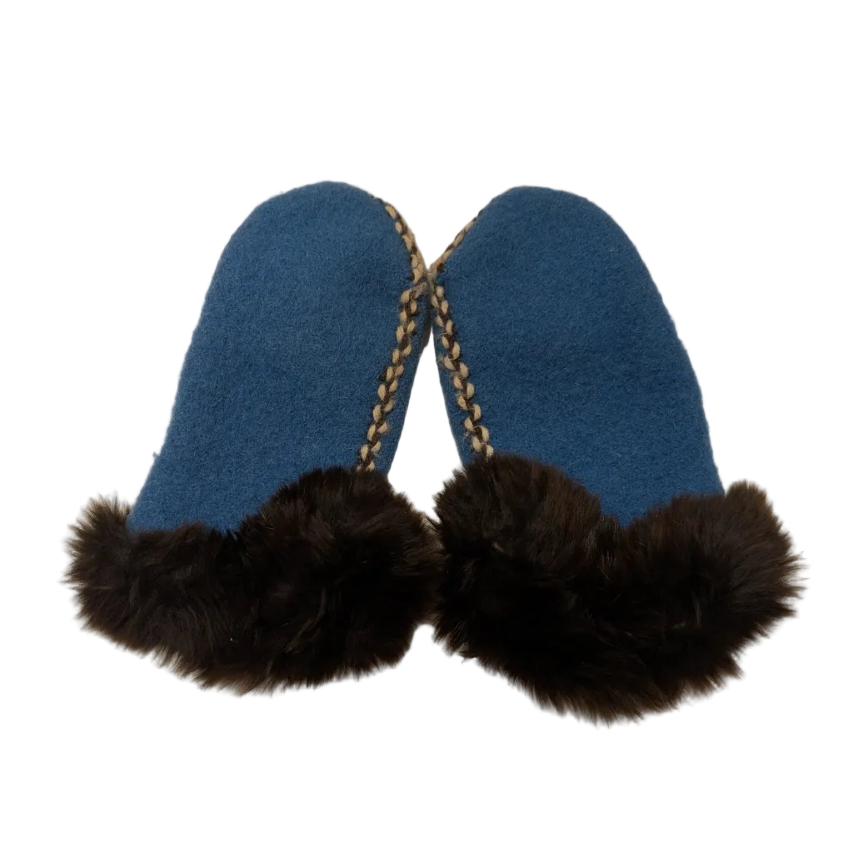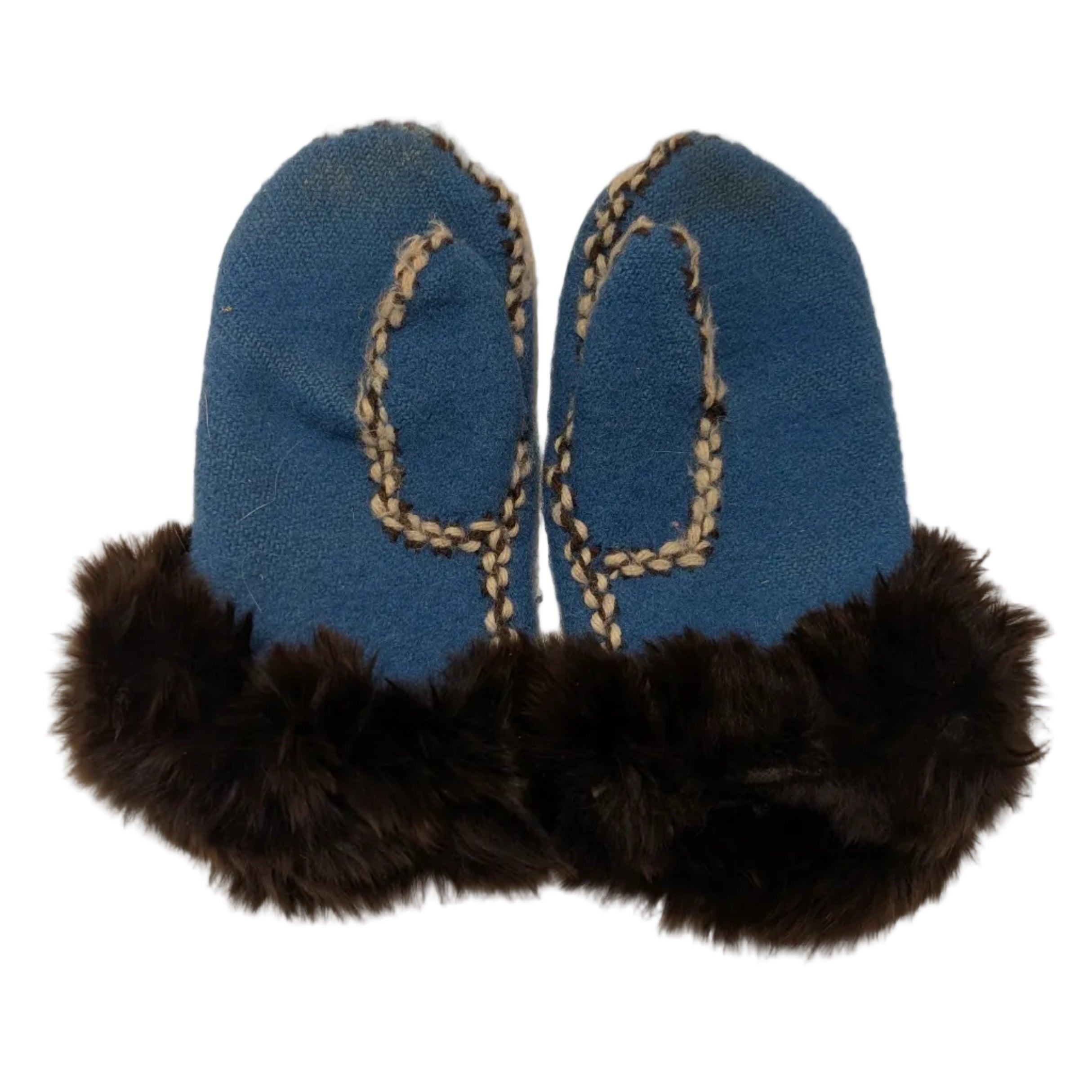 Home/Vintage/Vintage Children's Inuit Handmade Wool Mittens with Fur Trim