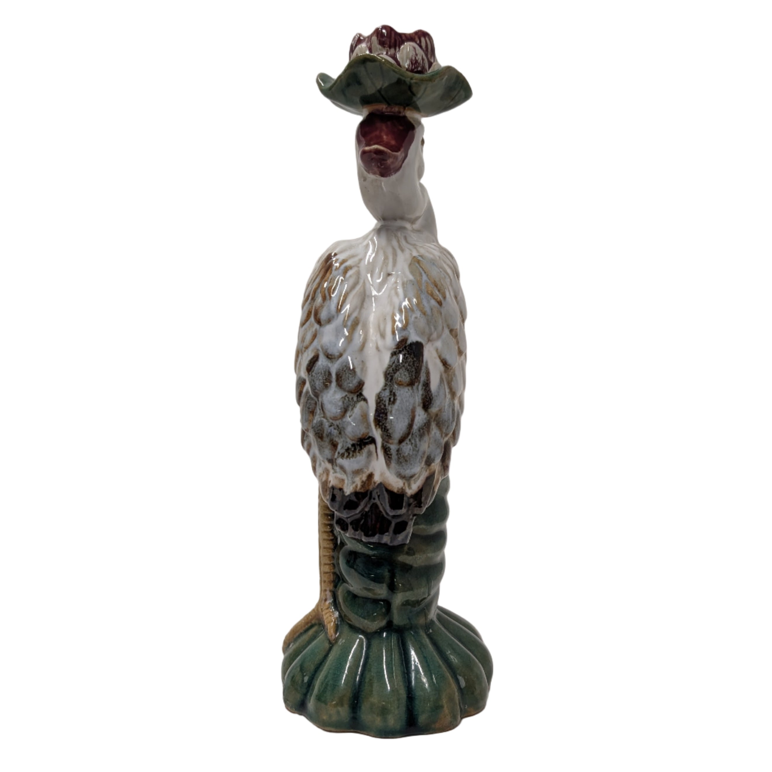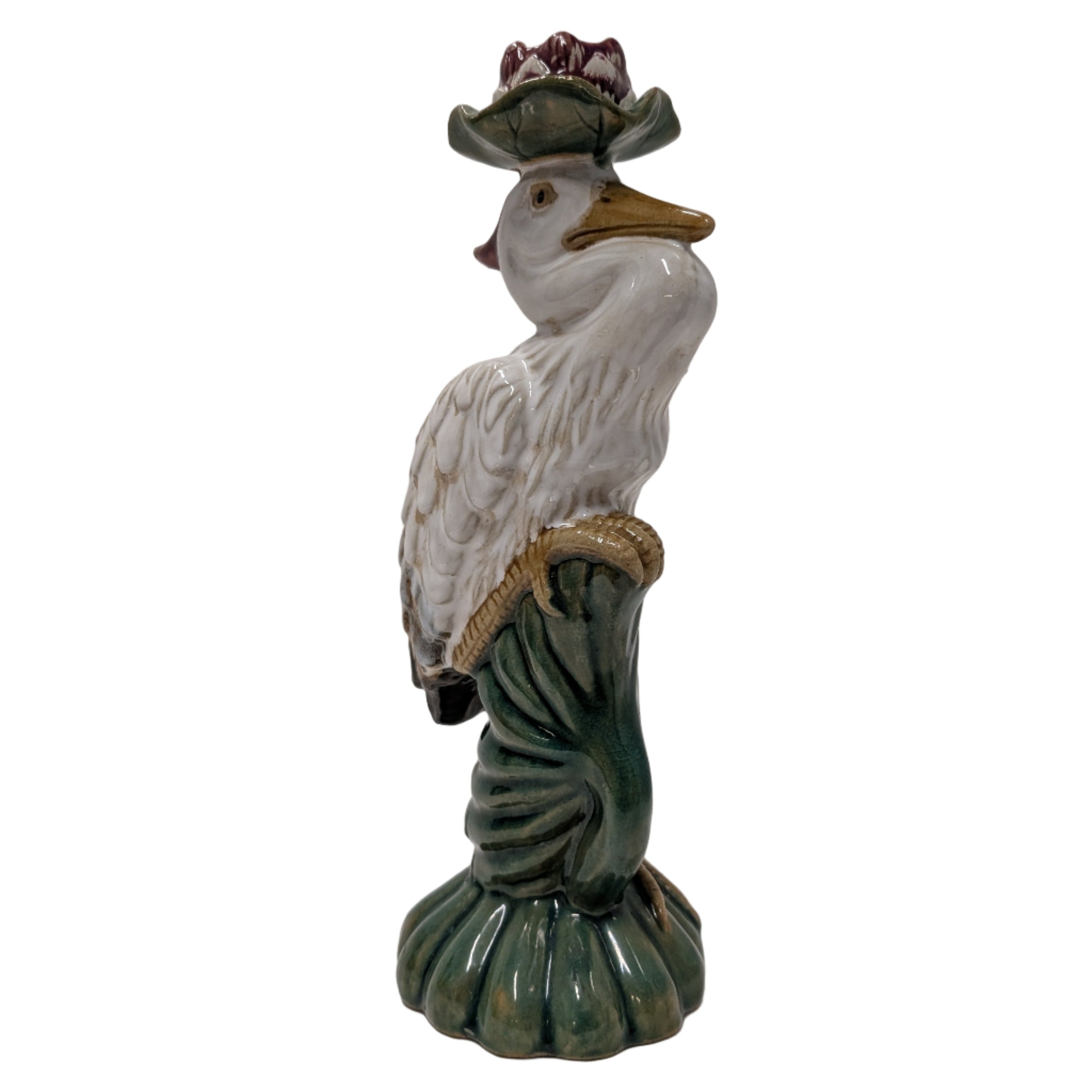 Add a touch of timeless elegance to your home with this exquisite vintage Italian majolica crane bird candle holder. This stunning piece showcases the artistry of traditional Italian ceramics, featuring a gracefully sculpted crane in vibrant, hand-painted majolica glazes.