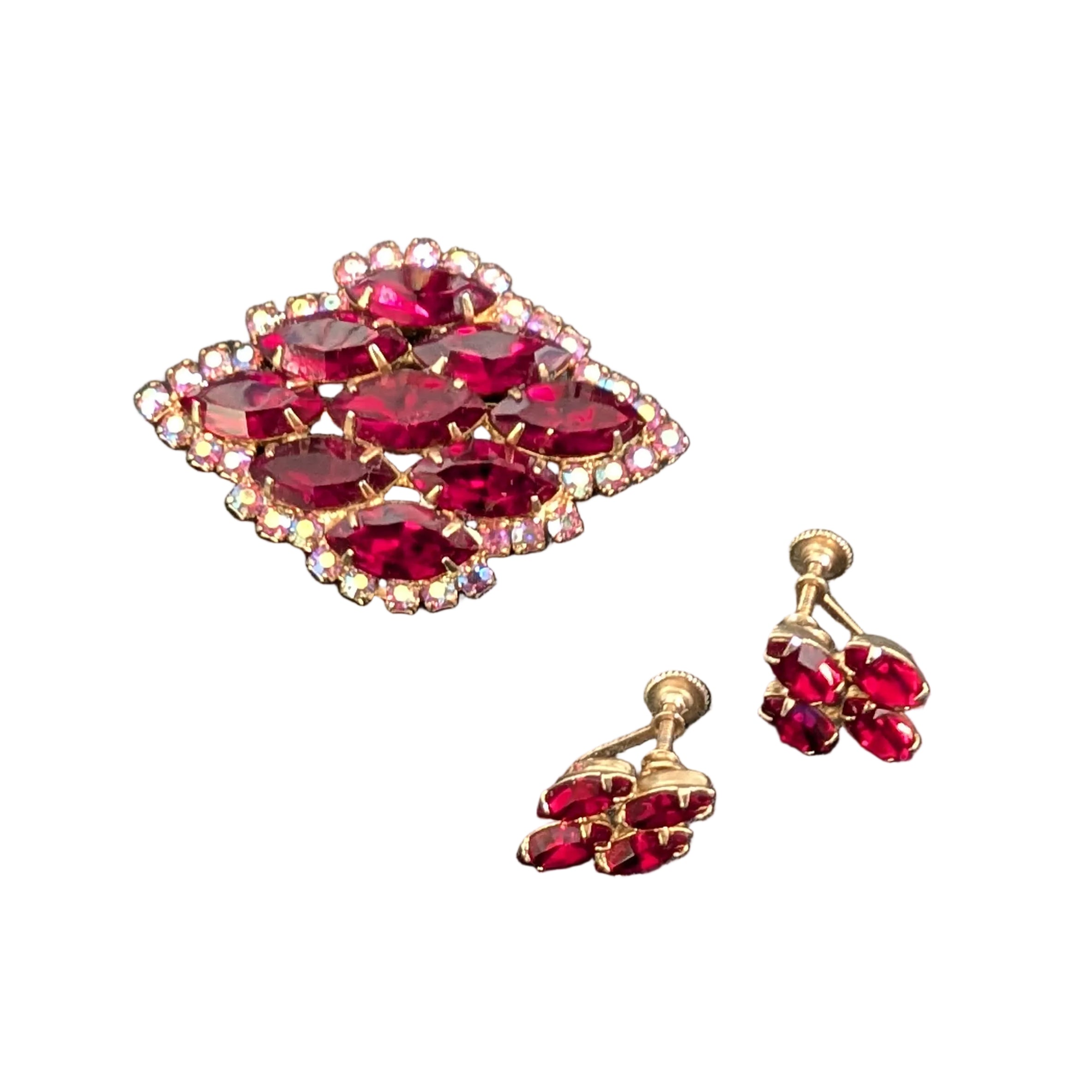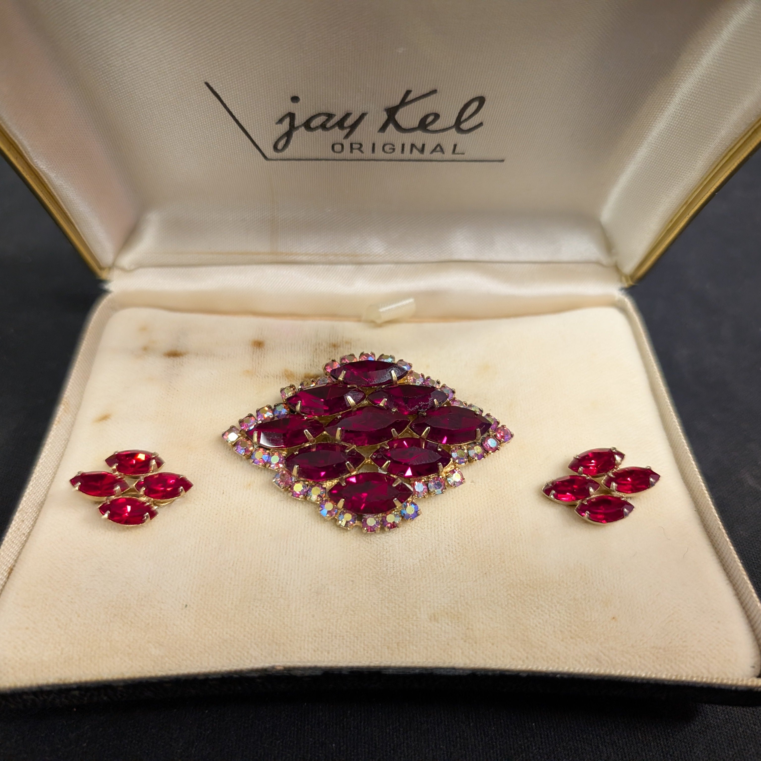 Vintage Jay Kel Brooch with Matching Screw-Back Clip-On Earrings