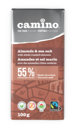 Quoi de neuf dans cette barre ? Eh bien, Camino a fait plus que simplement ajouter du sel marin à la barre originale pour taquiner vos papilles gustatives. Ils ont également ajouté des amandes entières grillées pour un CRUNCH encore plus satisfaisant . Du chocolat sucré, salé et croquant. Maintenant vous avez tout !