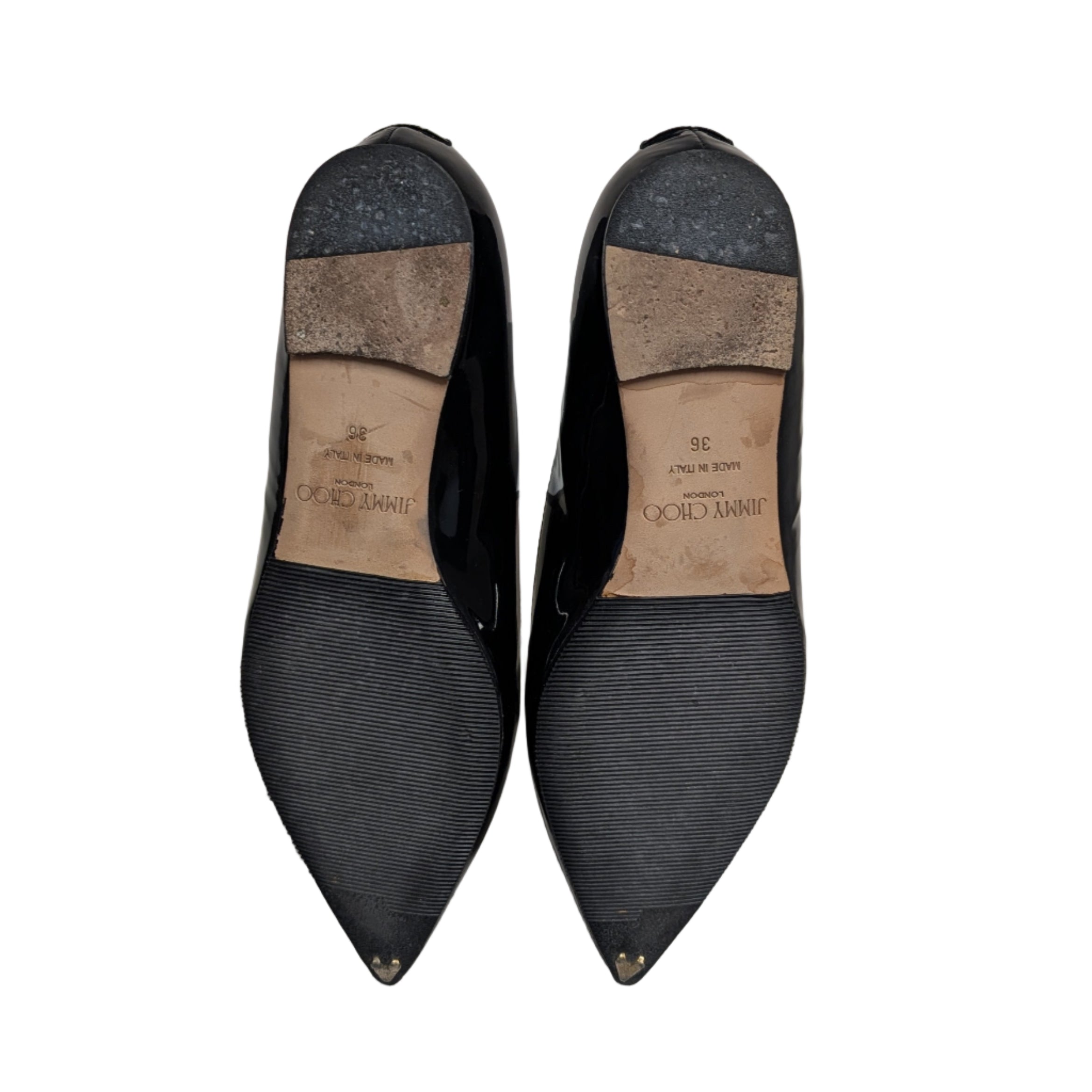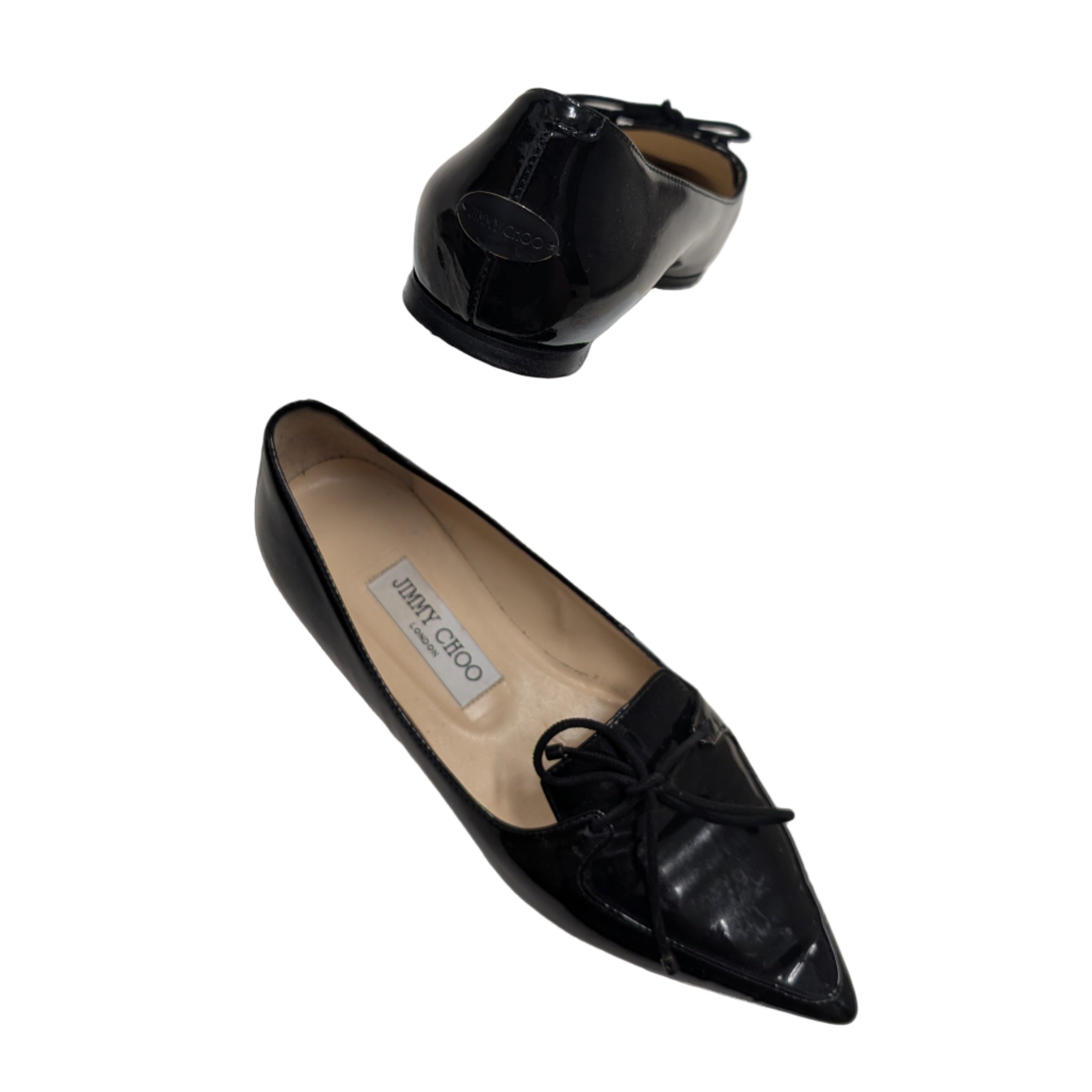 Jimmy Choo Black Patent Leather Point Toe Flats