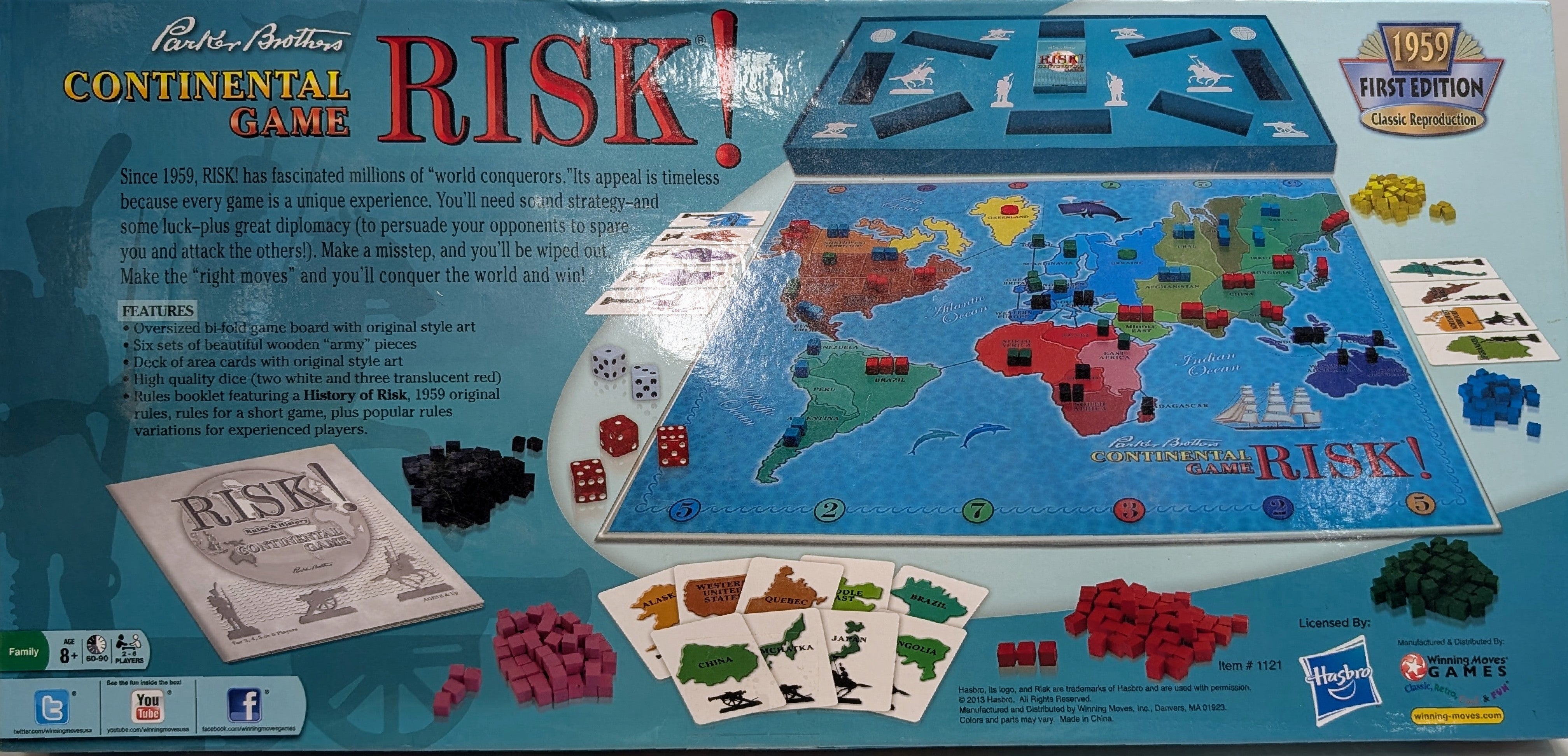 Winning Moves is very proud to bring you this classic reproduction of the original, 1959 edition of the game RISK. Enjoy!