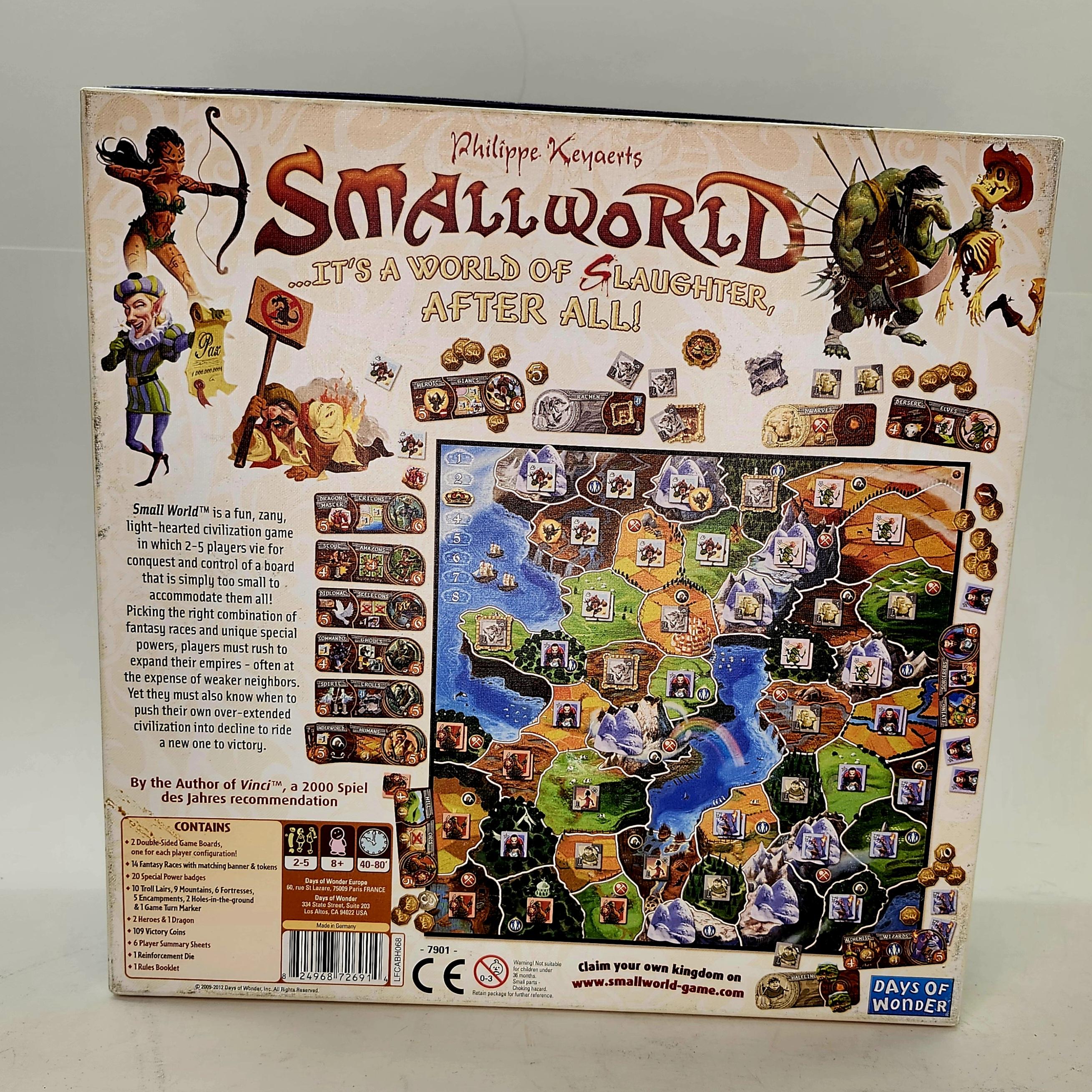 Small World is a popular board game designed by Philippe Keyaerts and published by Days of Wonder. In this game, players control fantasy creatures like elves, dwarves, and orcs, vying for territory and resources. It's a game of strategy and fun, perfect for game nights with friends and family.