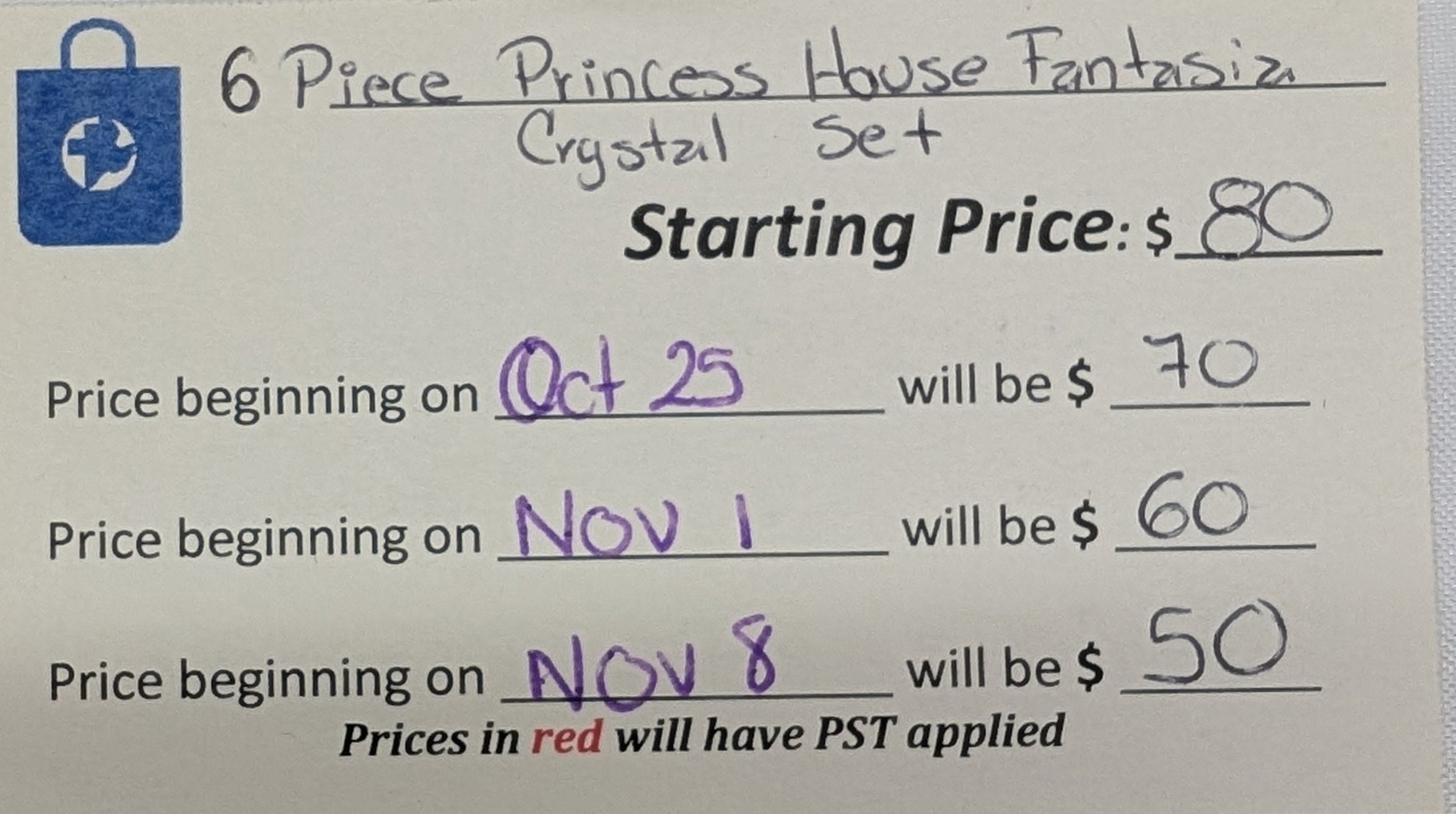Part of our "Countdown Auction", this item is available for immediate purchase. The price is set to drop every Saturday morning (by 9:30 in store & online); see the picture of the description card for amounts and dates. (Please note, items priced over $100 will have 7% PST applied.)