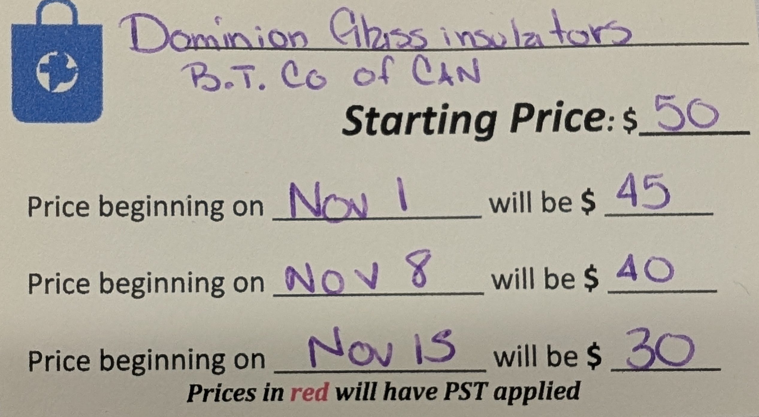 Dominion Glass Insulators , B.T. Co of CAN [Countdown Auction]