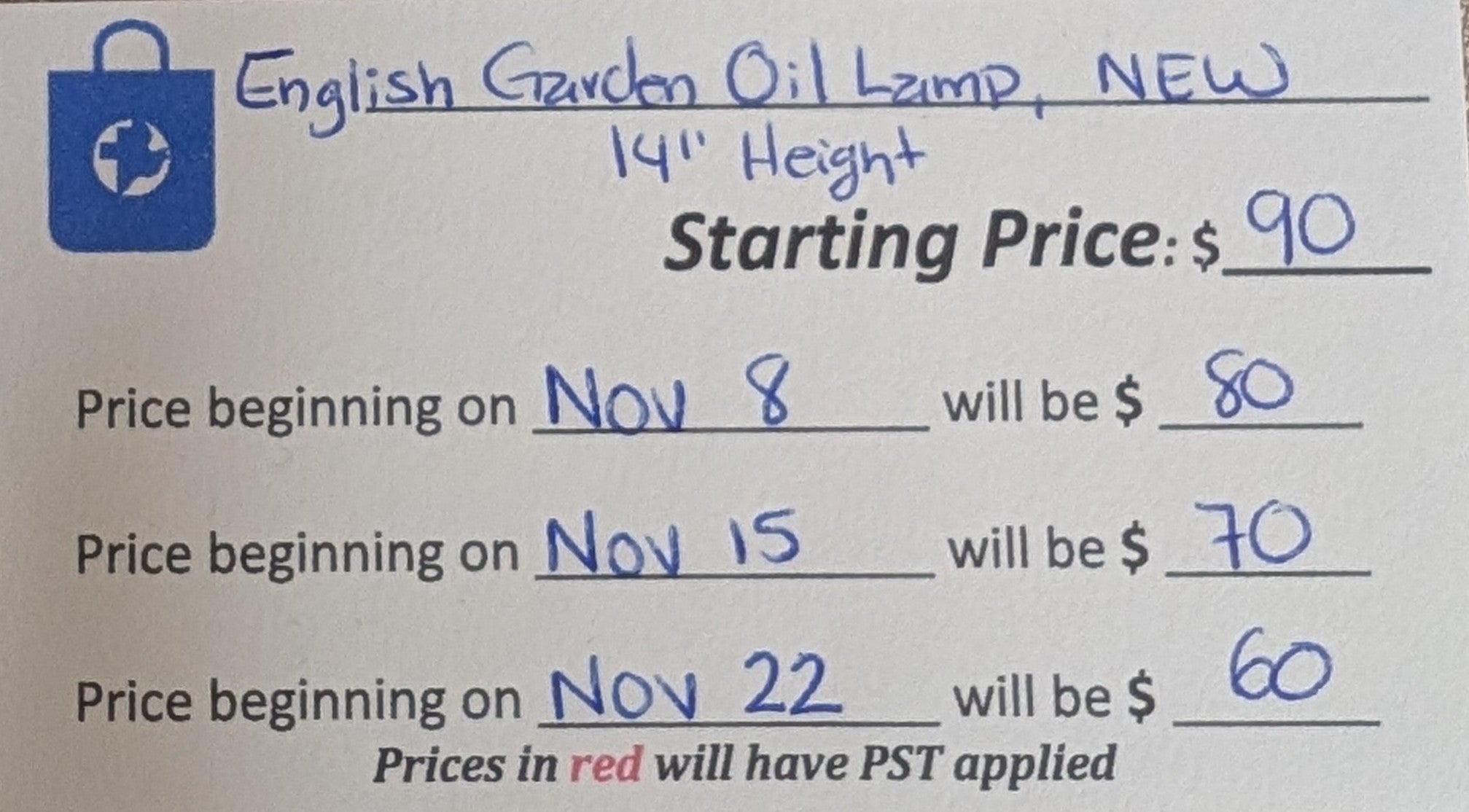 Aceuil/Vente aux enchères avec compte à rebours/English Garden Oil Lamp, New, 14" Height [Countdown Auction]