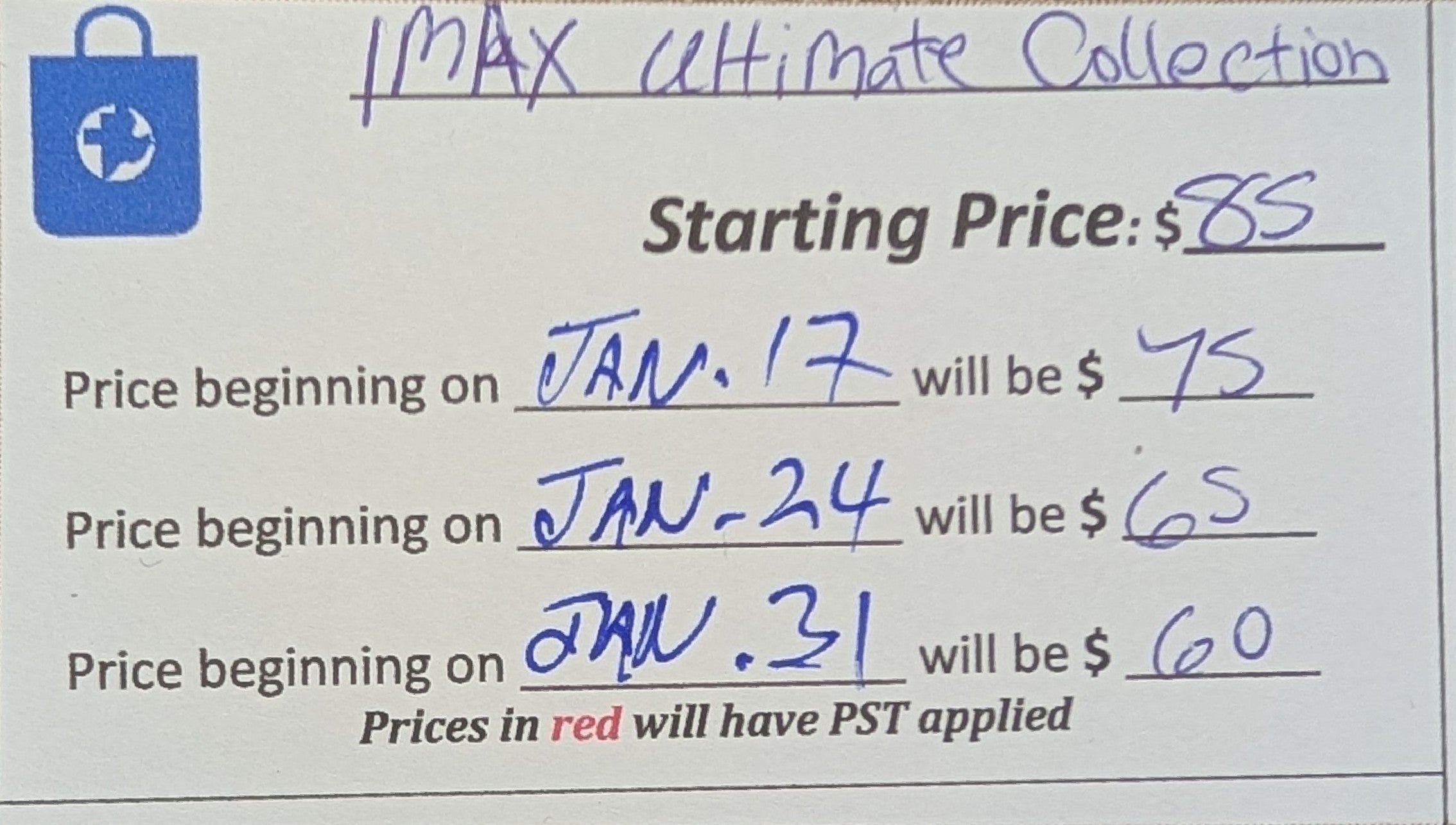 Part of our "Countdown Auction", this item is available for immediate purchase. The price is set to drop every Saturday morning (by 9:30 in store & online); see the picture of the description card for amounts and dates. (Please note, items priced over $100 will have 7% PST applied.)