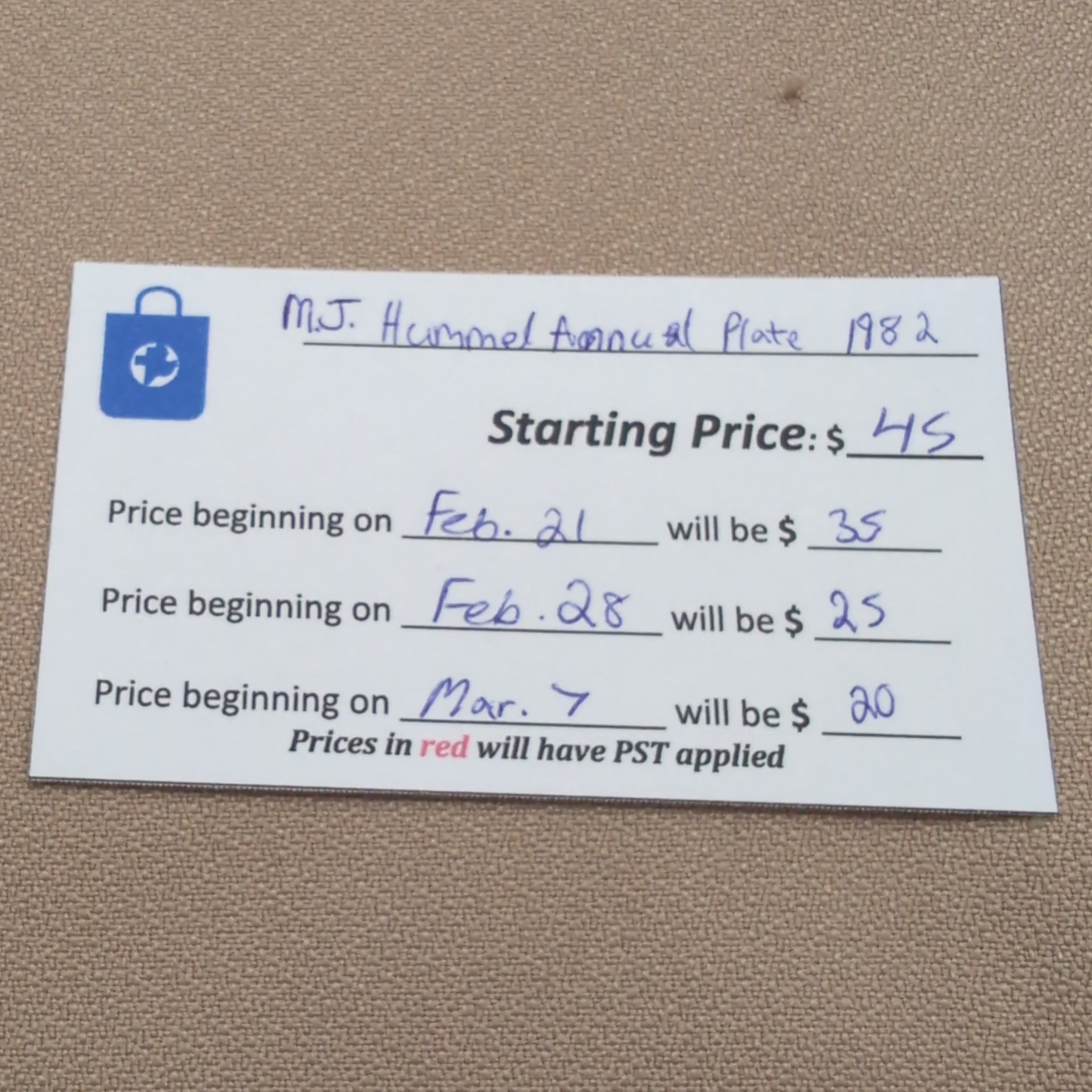 Part of our "Countdown Auction", this item is available for immediate purchase. The price is set to drop every Saturday morning (by 9:30 in store & online); see the picture of the description card for amounts and dates. (Please note, items priced over $100 will have 7% PST applied.)
