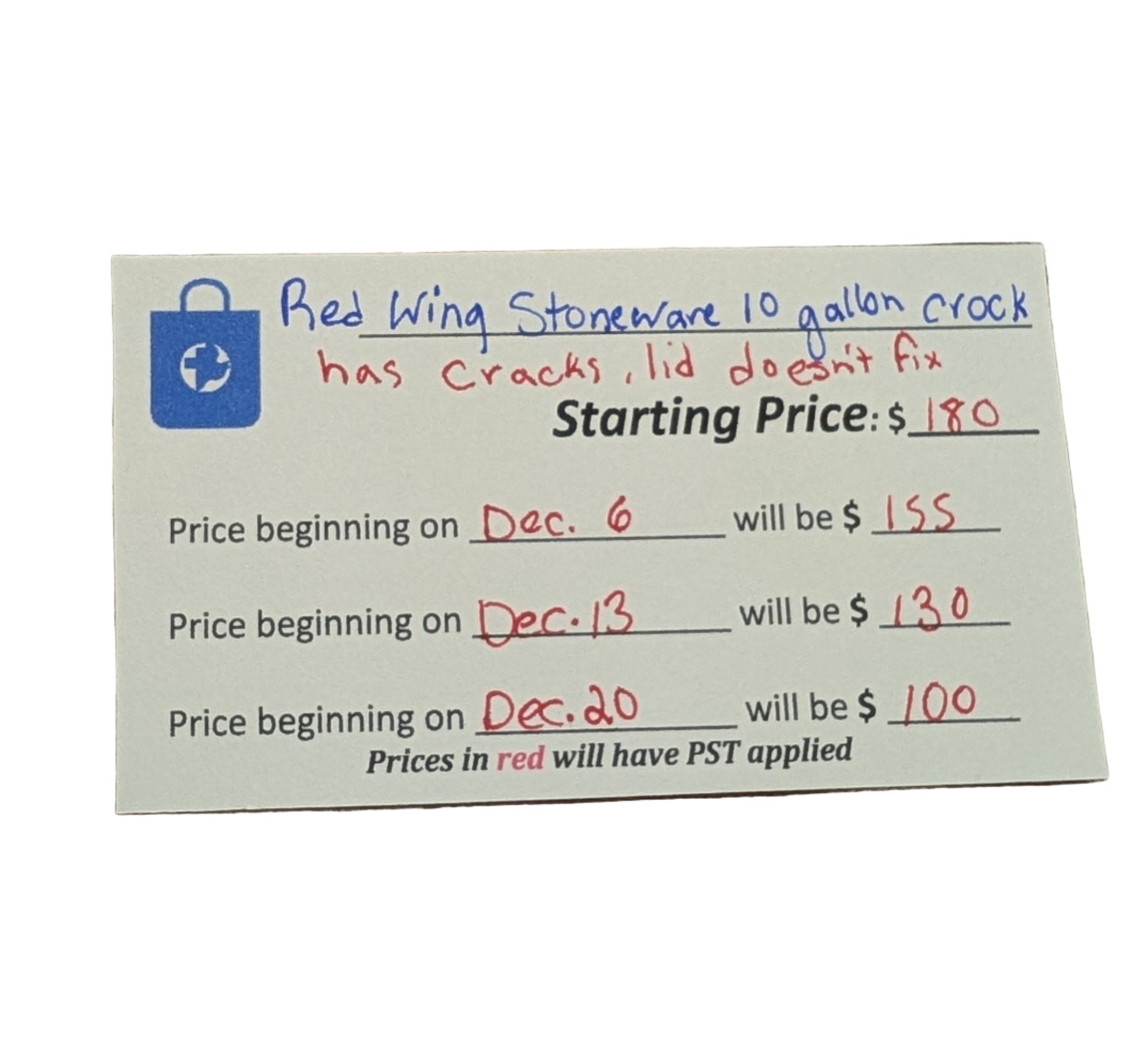 Part of our "Countdown Auction", this item is available for immediate purchase. The price is set to drop every Saturday morning (by 9:30 in store & online); see the picture of the description card for amounts and dates. (Please note, items priced over $100 will have 7% PST applied.)