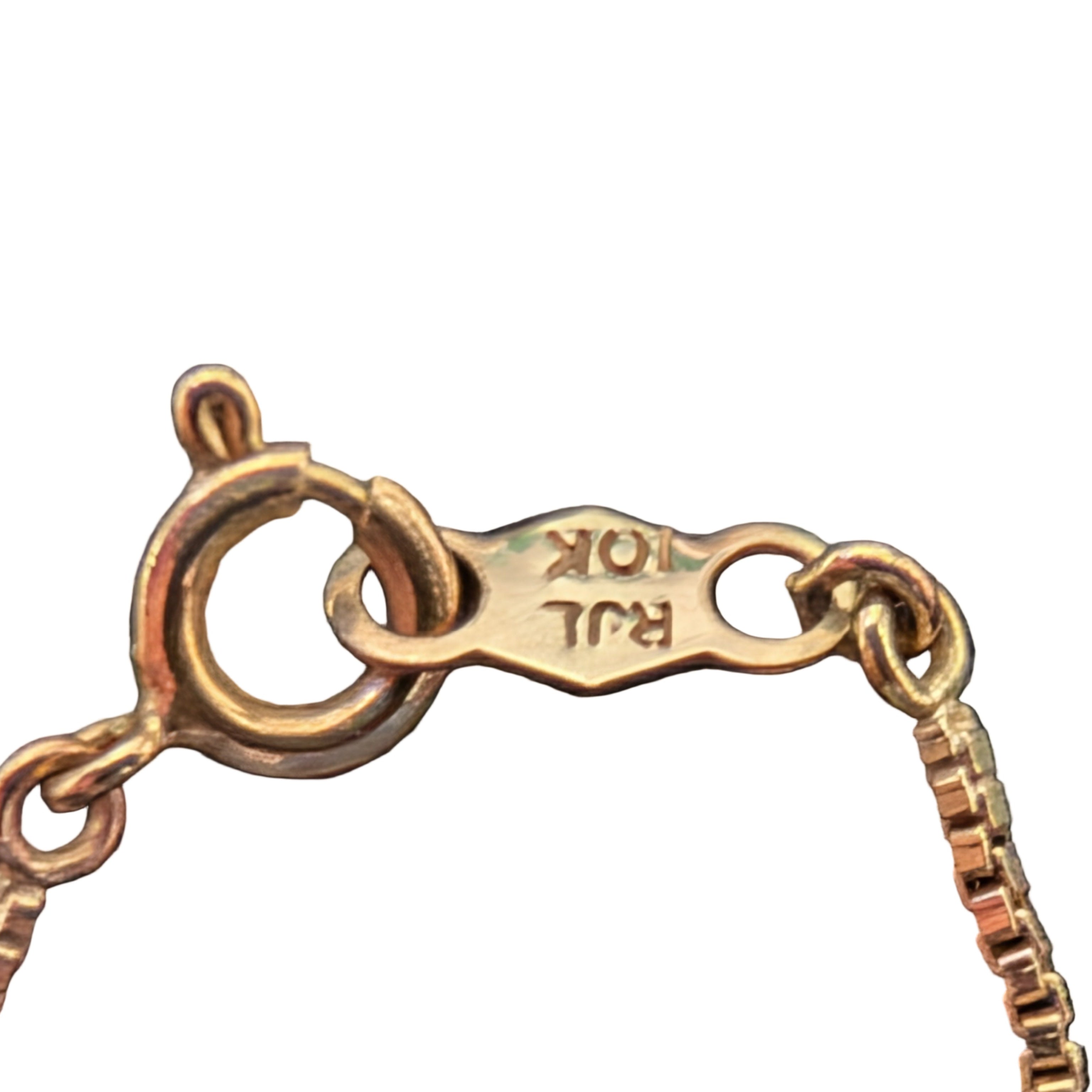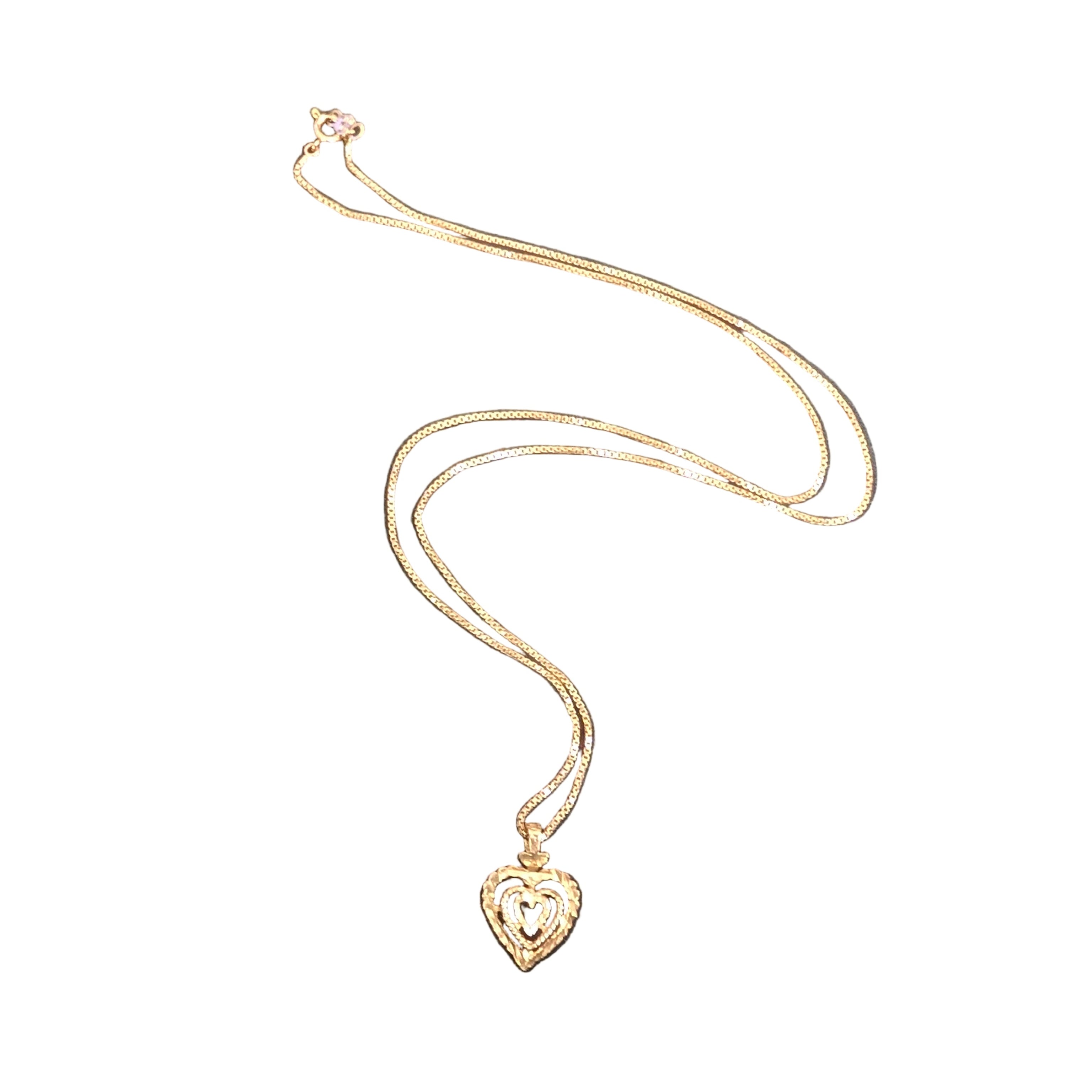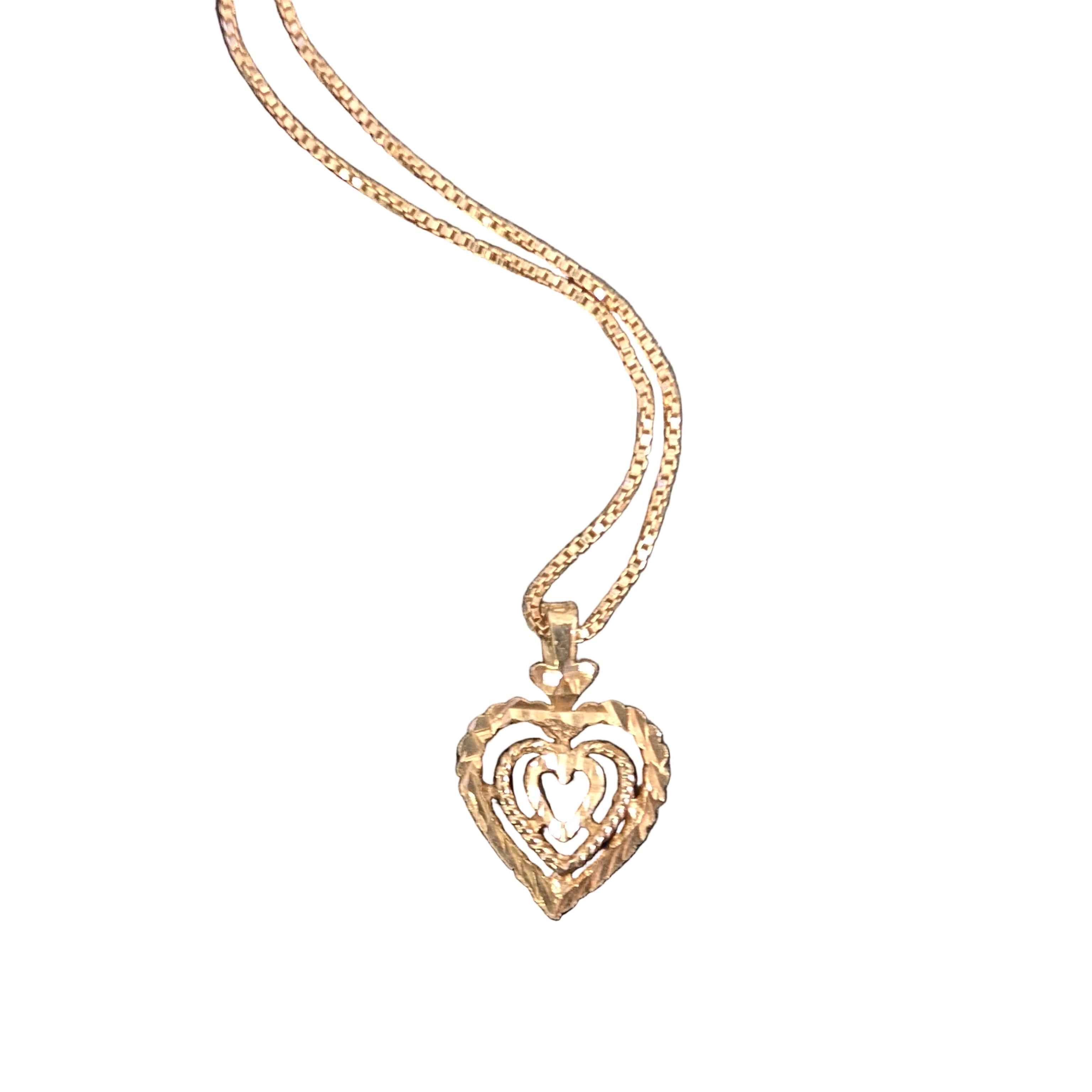 10K Yellow Gold Diamond-Cut Heart Pendant on a 10K Yellow Gold 19" Box Chain, approximately 1mm thick. In good condition.