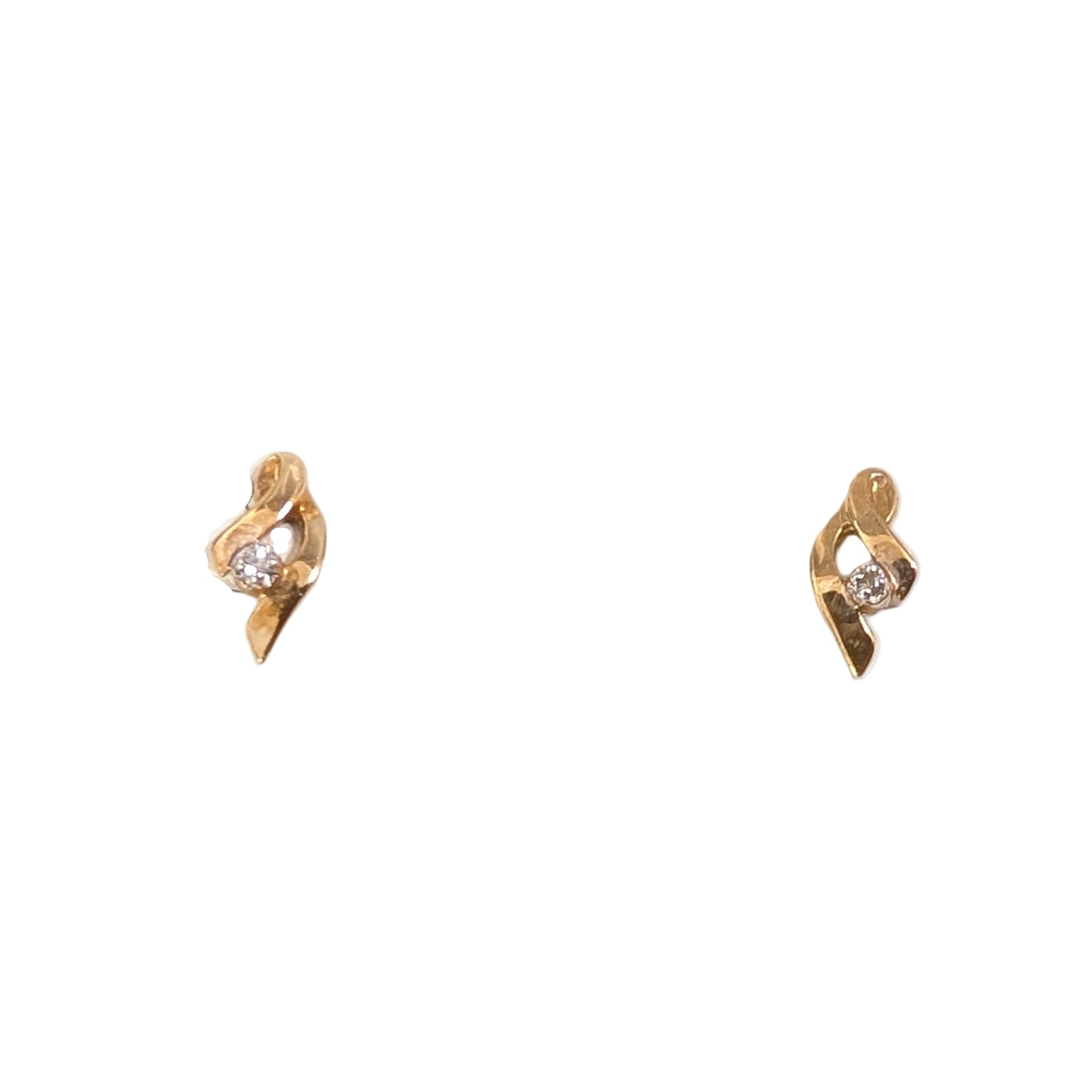 10K YG Clear Stone Swirl Design Stud Earrings.