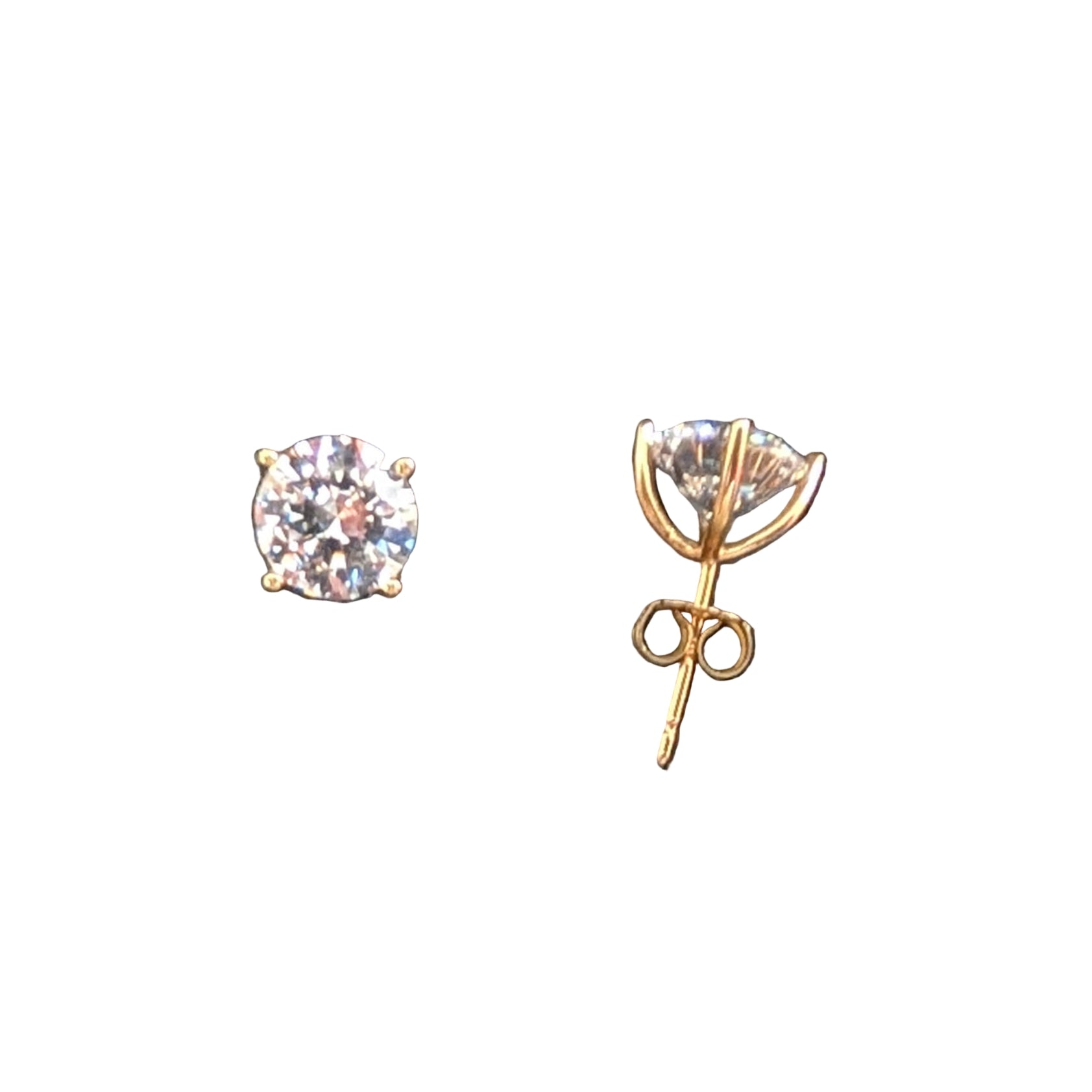 14K yellow gold 7mm CZ Stud Earrings with 14K yellow gold backings, in a 4-prong setting.