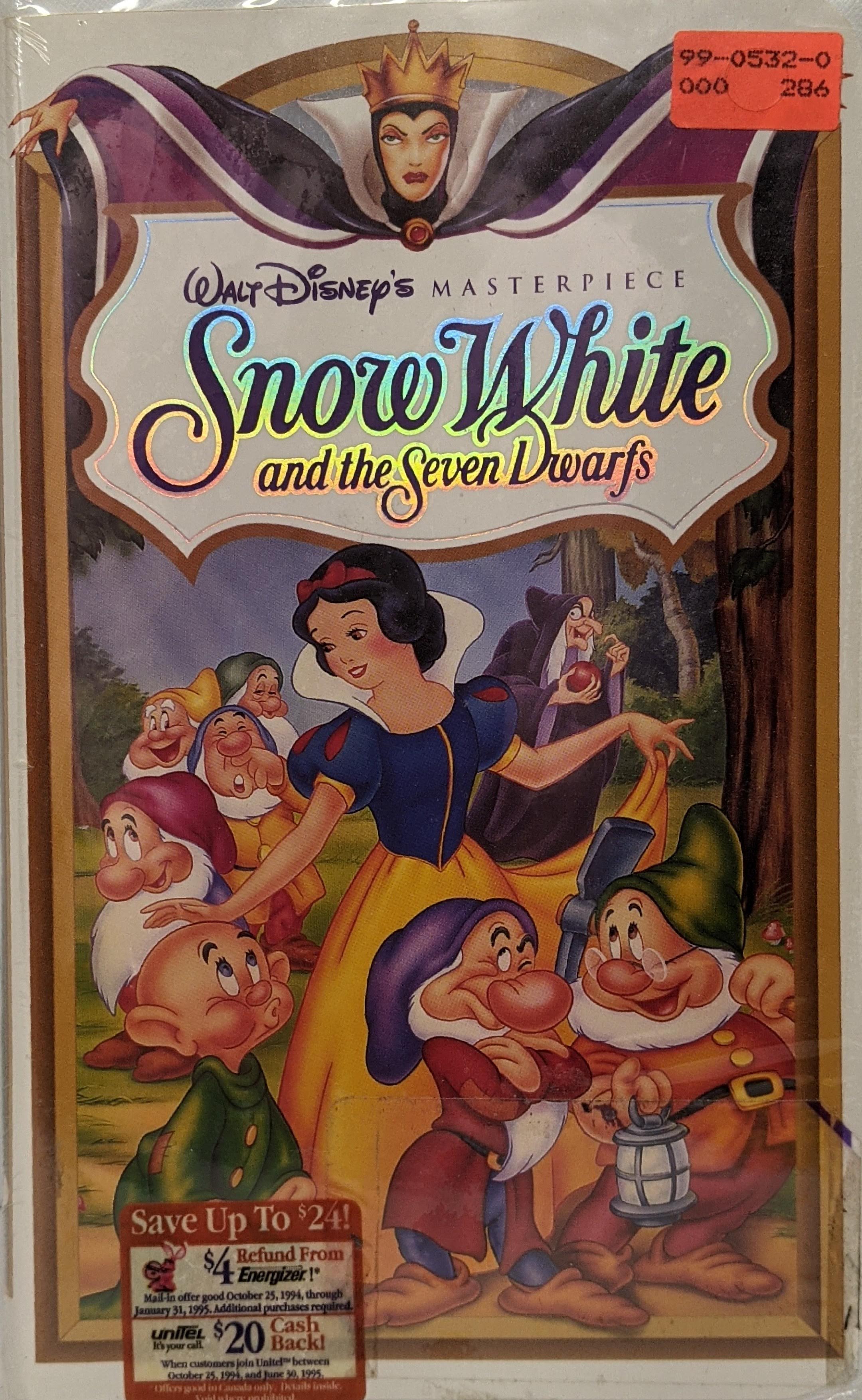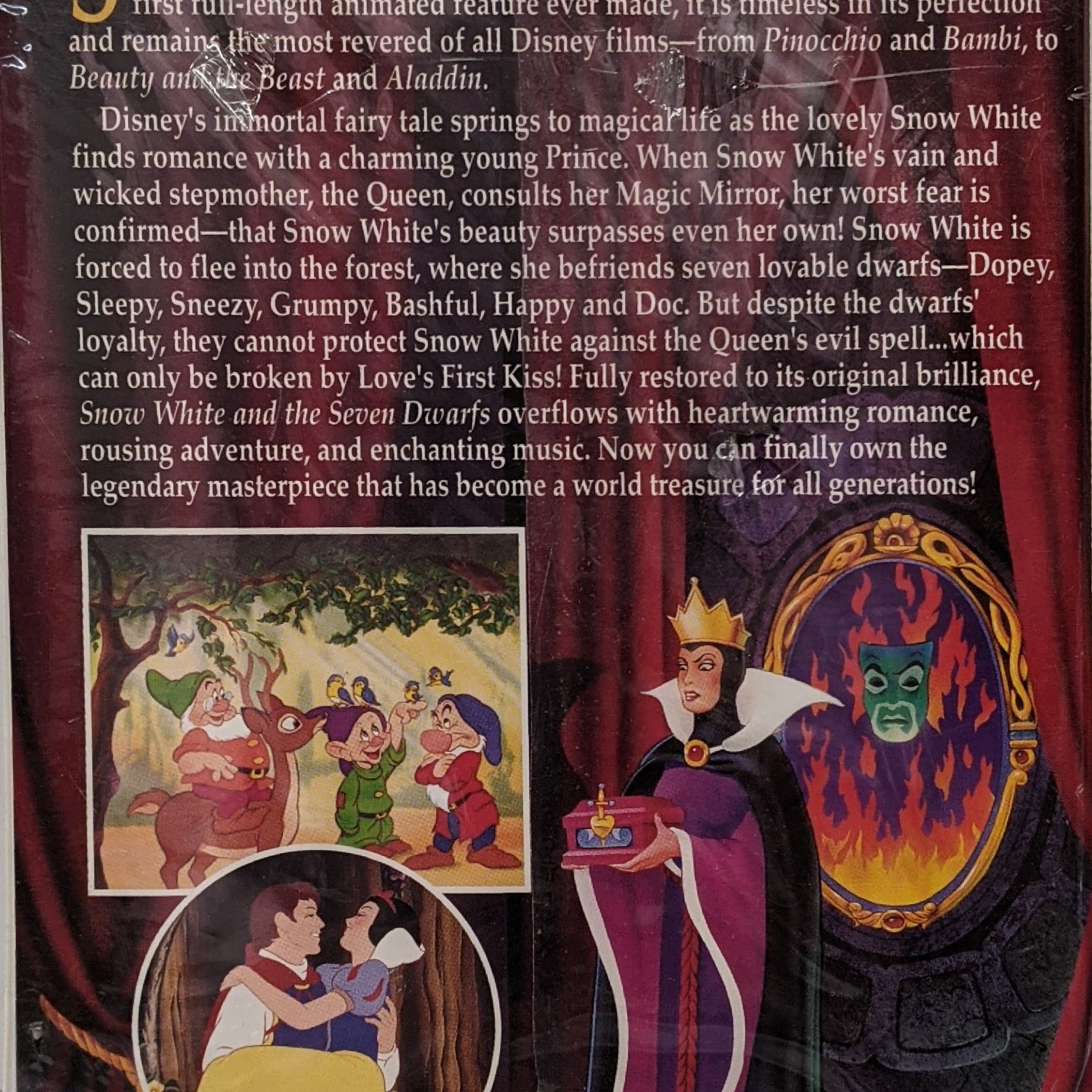 Chaque exemplaire de cette VHS a été vendu 26,99 $. Le 14 novembre 1994, il a été rapporté que Blanche-Neige et les Sept Nains s'était vendu à plus de 17 millions d'exemplaires en seulement trois semaines, puis plus tard à 20 millions d'exemplaires à la mi-décembre 1994. La vidéo a été interrompue le 30 avril 1995 . (tiré de https://retromedialibrary.fandom.com/wiki/Snow_White_and_the_Seven_Dwarfs_(1994_VHS))