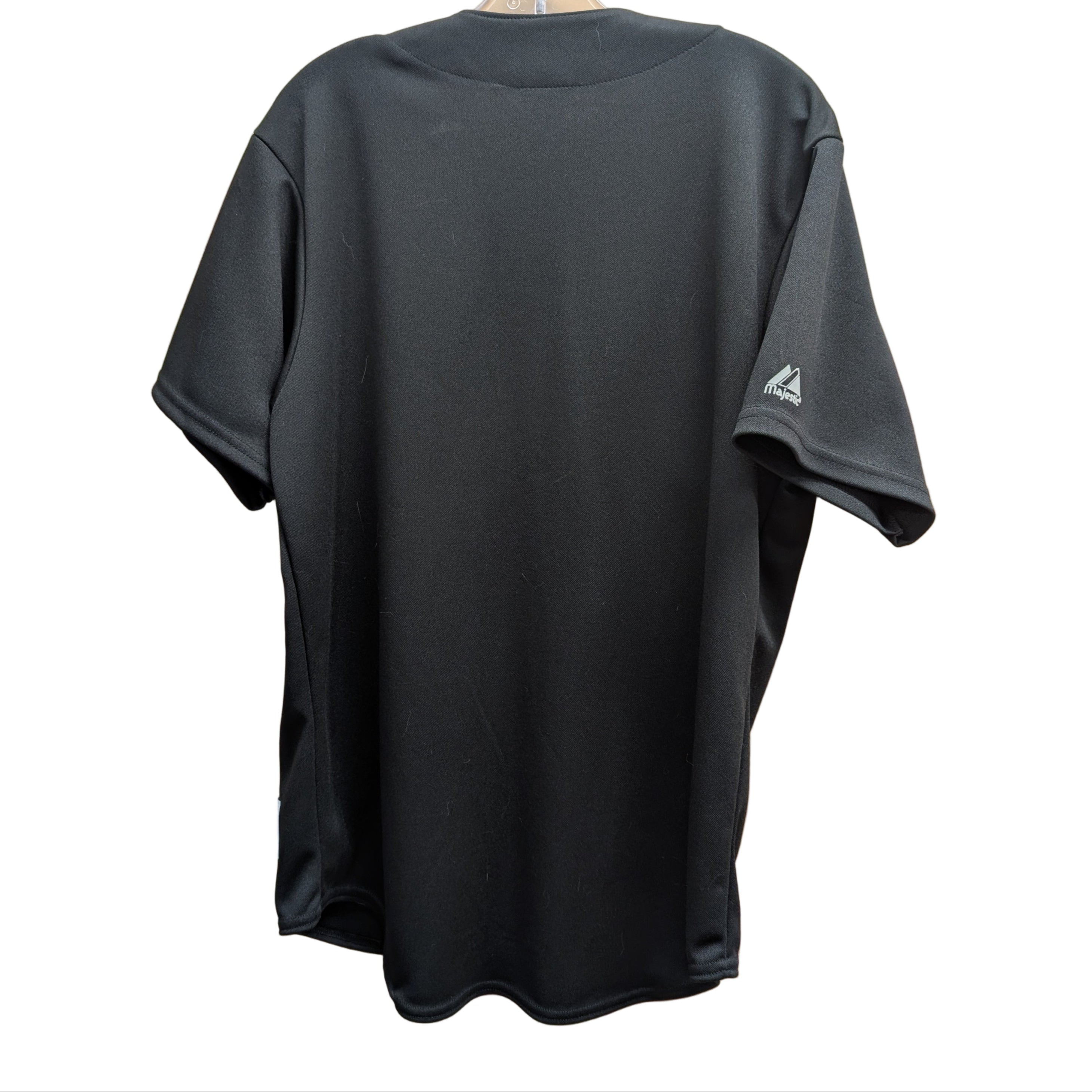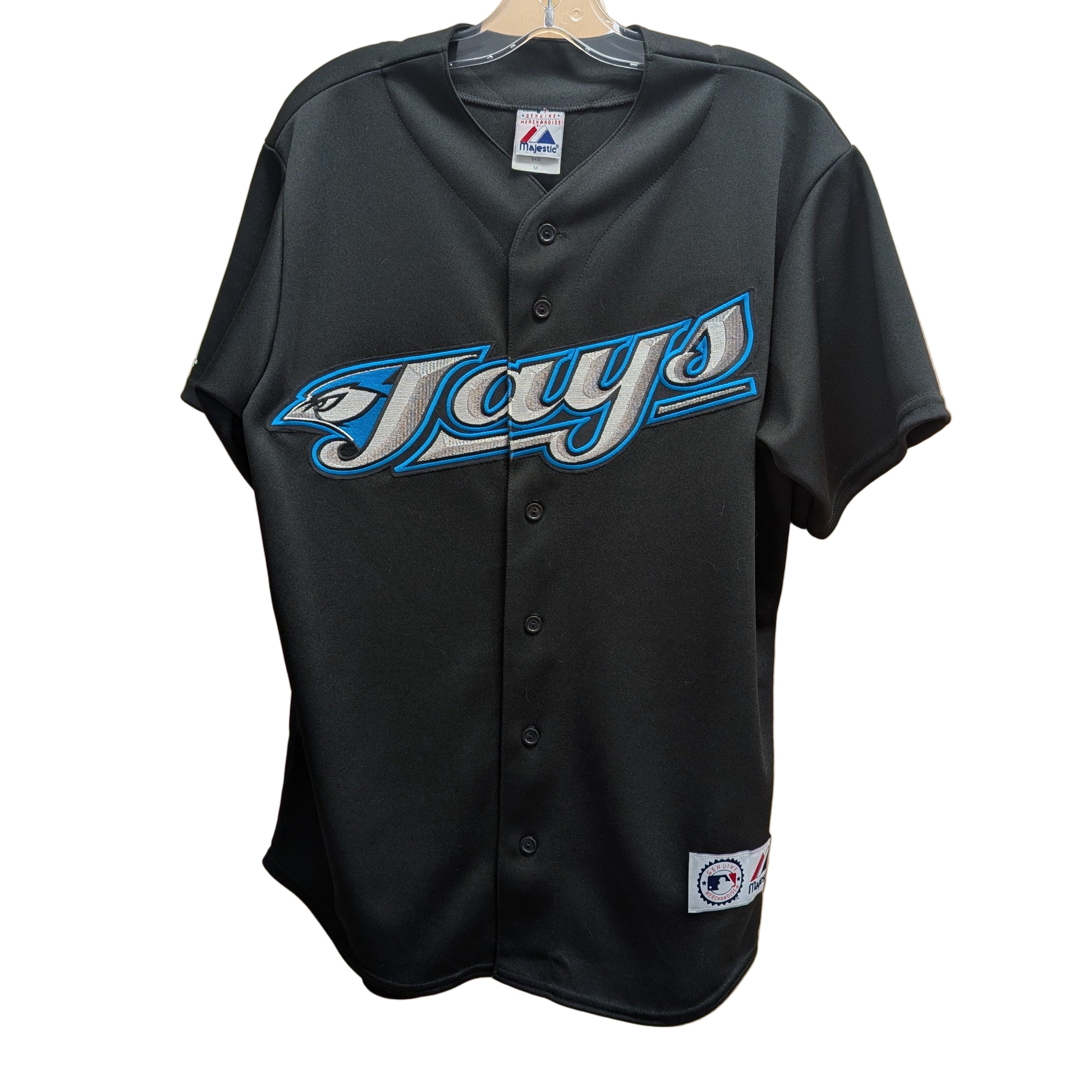 Represent your Blue Jays pride with this classic black Majestic jersey in size Medium. This authentic piece of Blue Jays history features the quality craftsmanship that Majestic was known for during their time as MLB's official uniform supplier.