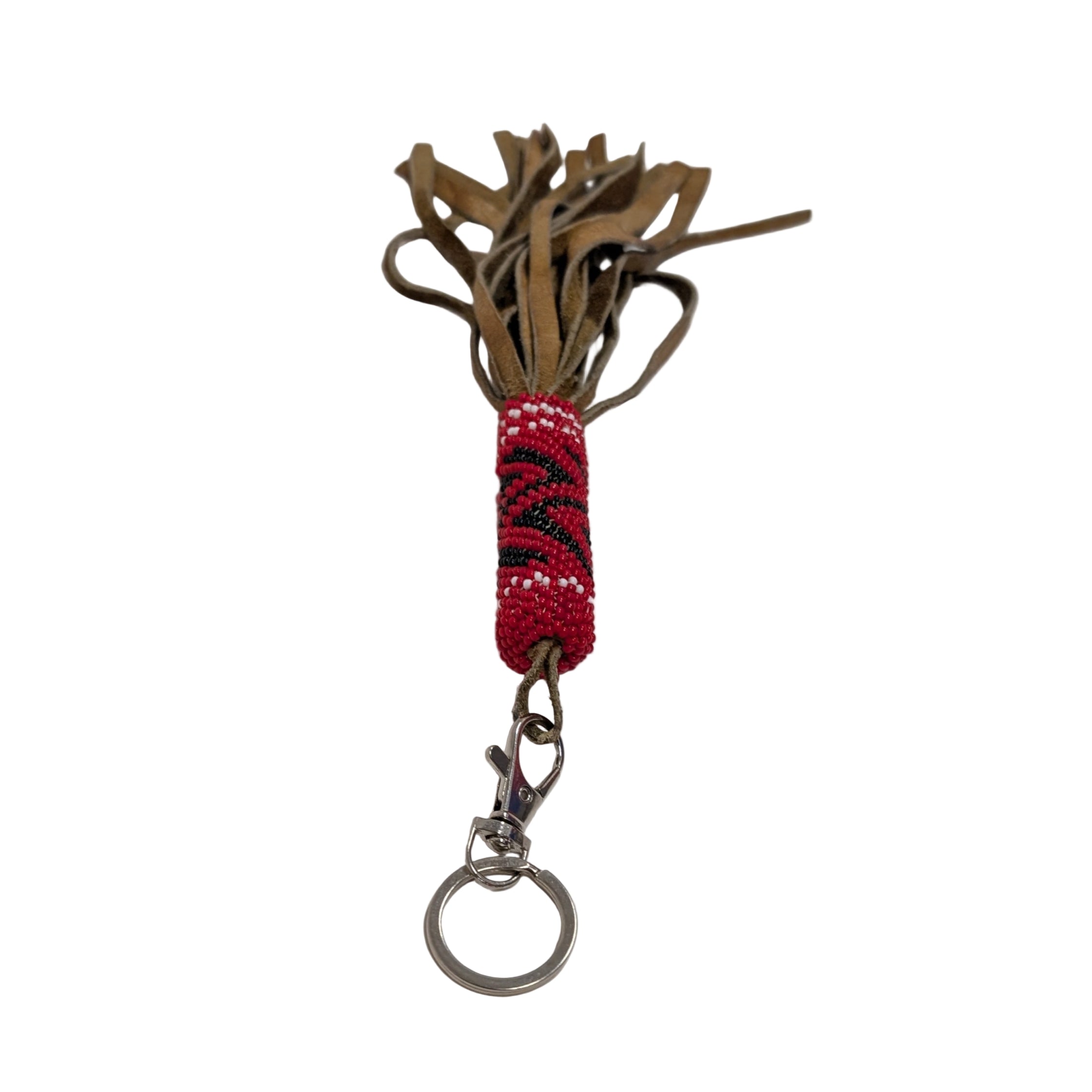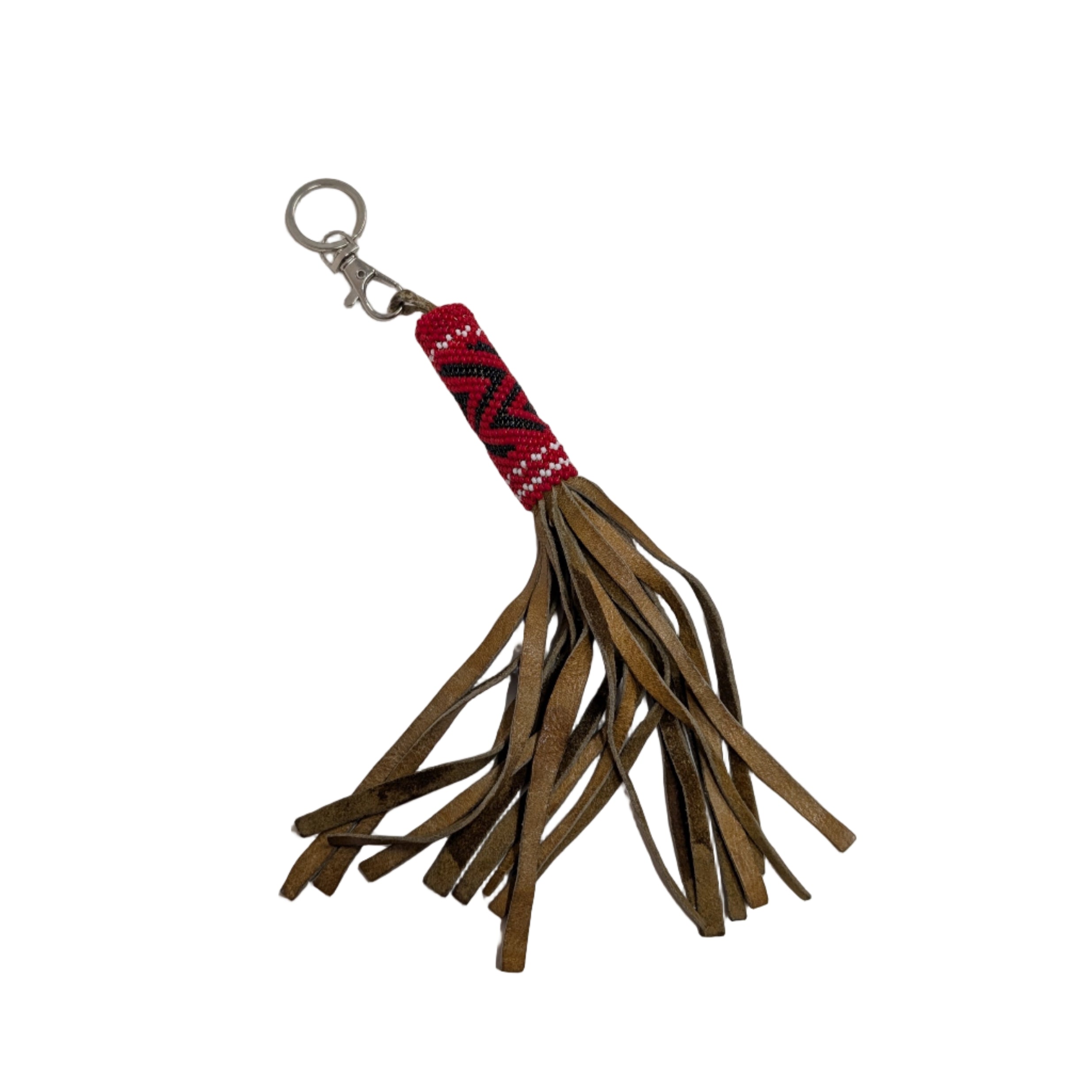 This authentic 8-inch hand-beaded leather tassel keychain showcases traditional artistry with genuine character.