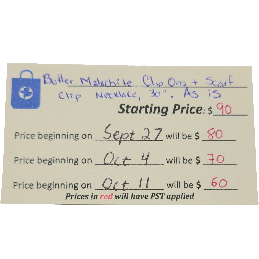 Part of our "Countdown Auction", this item is available for immediate purchase. The price is set to drop every Saturday morning (by 9:30 in store & online); see the picture of the description card for amounts and dates. (Please note, items priced over $100 will have 7% PST applied.)