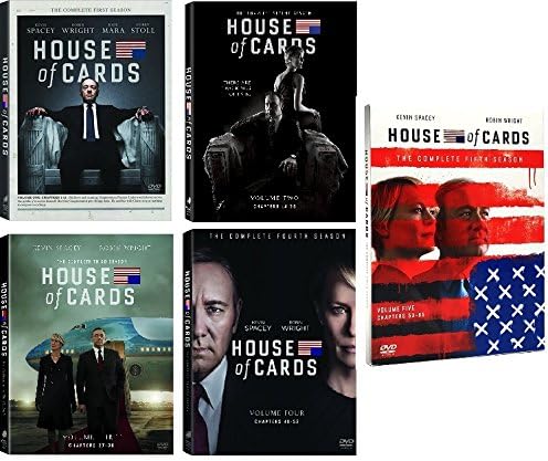 Experience the complete political drama with House of Cards: The Complete First Five Seasons on DVD. Follow Frank Underwood's ruthless rise to power in this critically acclaimed Netflix series starring Kevin Spacey and Robin Wright.