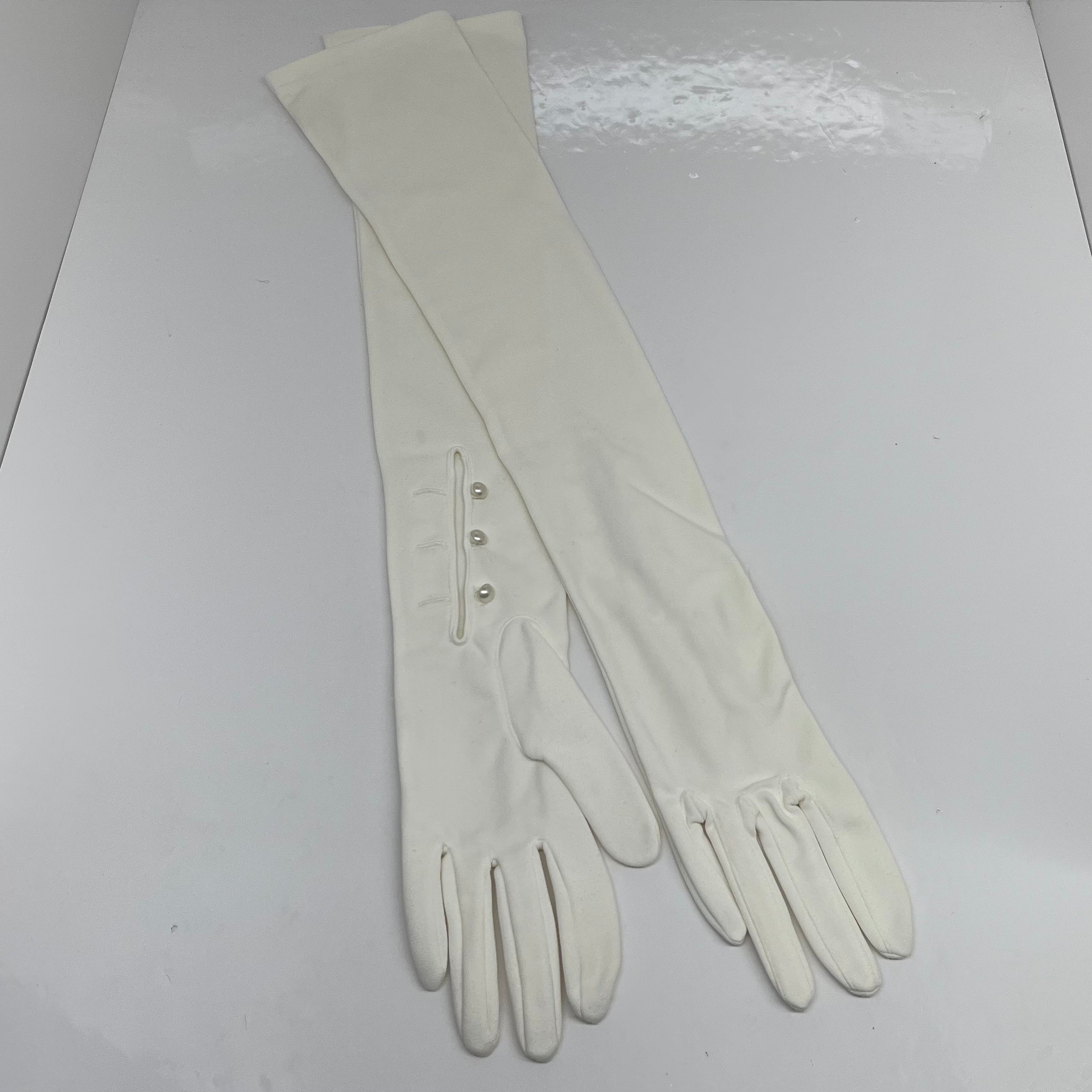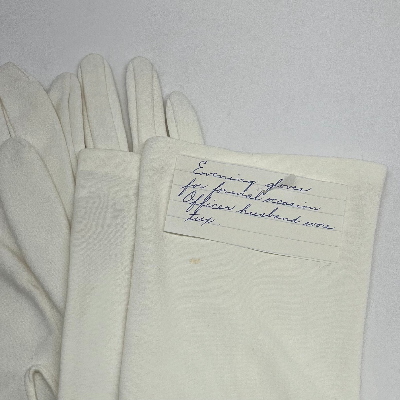 Note included about their history, “Evening gloves for formal occasion. Officer husband wore tux.”