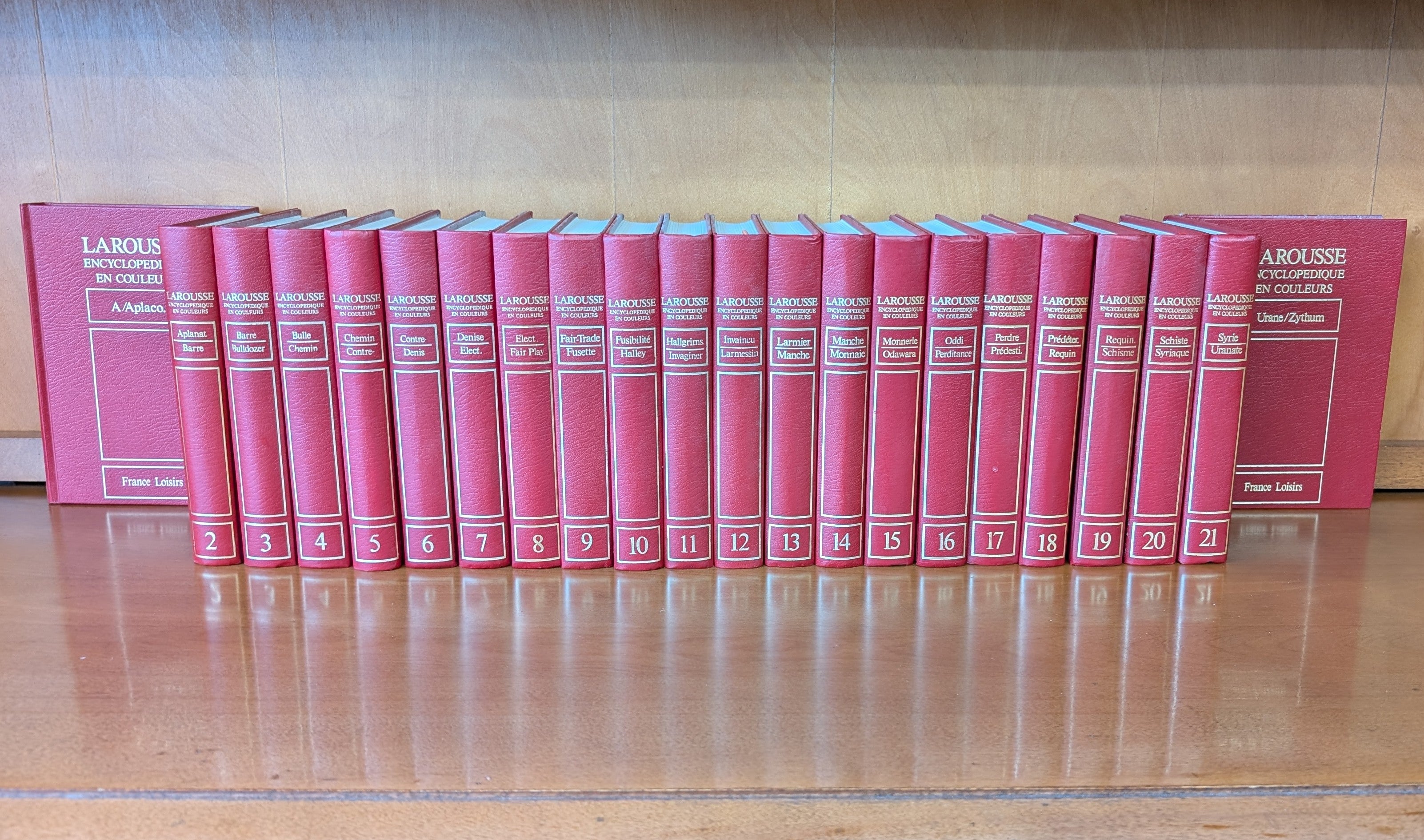 Introducing the Larousse encyclopédique en couleurs, Tome 1-22, a comprehensive and visually stunning encyclopedia set. This set includes 22 volumes, each filled with detailed information on a wide range of topics. The colorful illustrations and clear text make it perfect for both children and adults. Whether you're a student, teacher, or simply a curious individual, this encyclopedia set is a must-have for your library. This set is in excellent/like new condition.